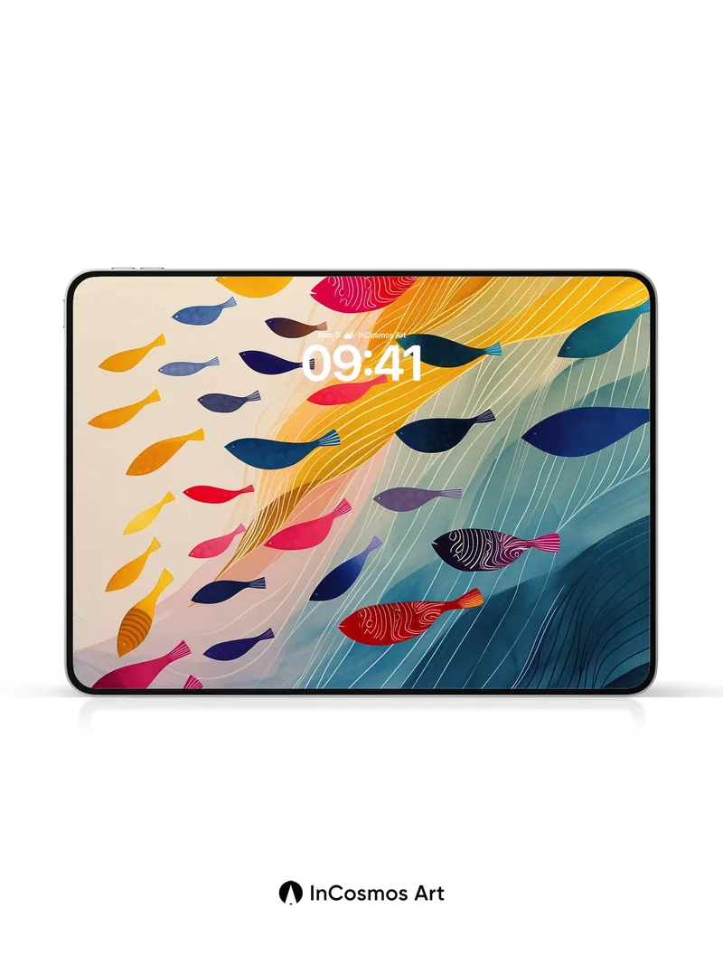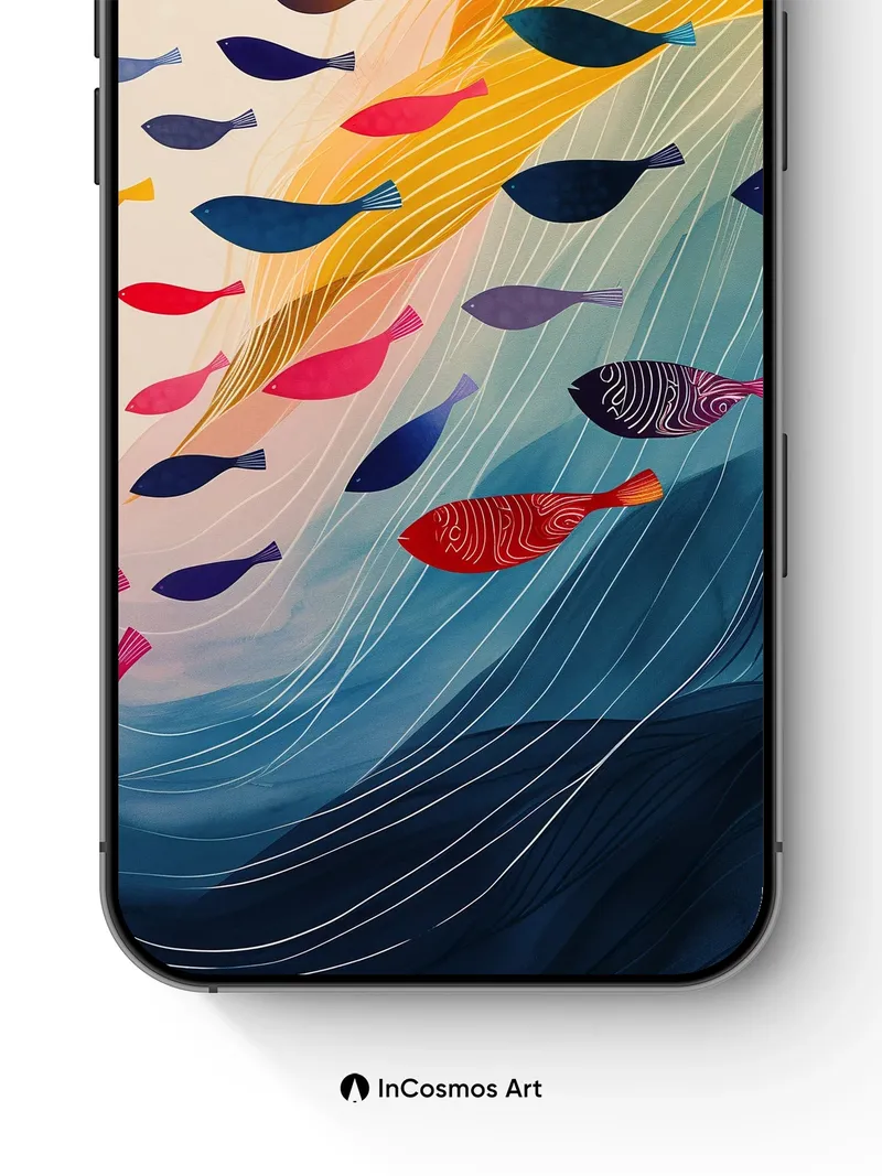 Oceanic Current Wallpaper with Swirling Fish