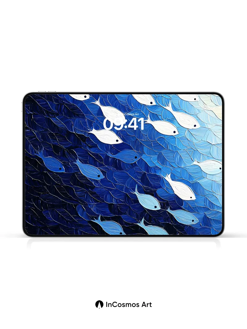 Oceanic Drift Wallpaper with Fish Scale Texture