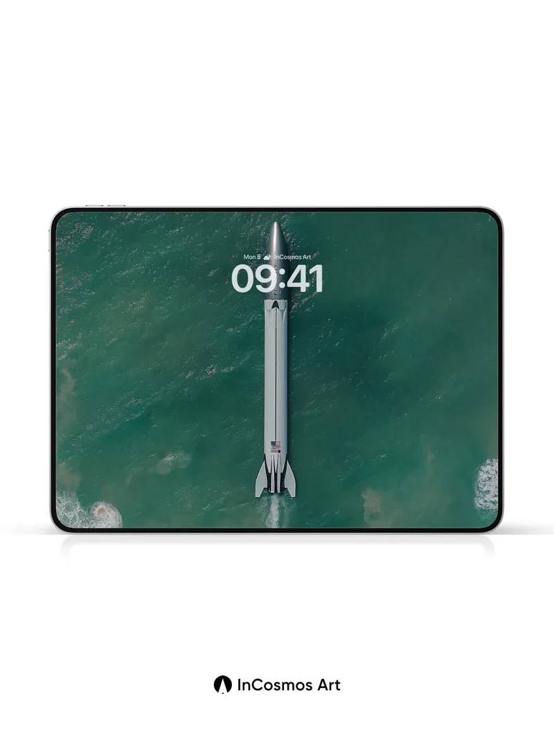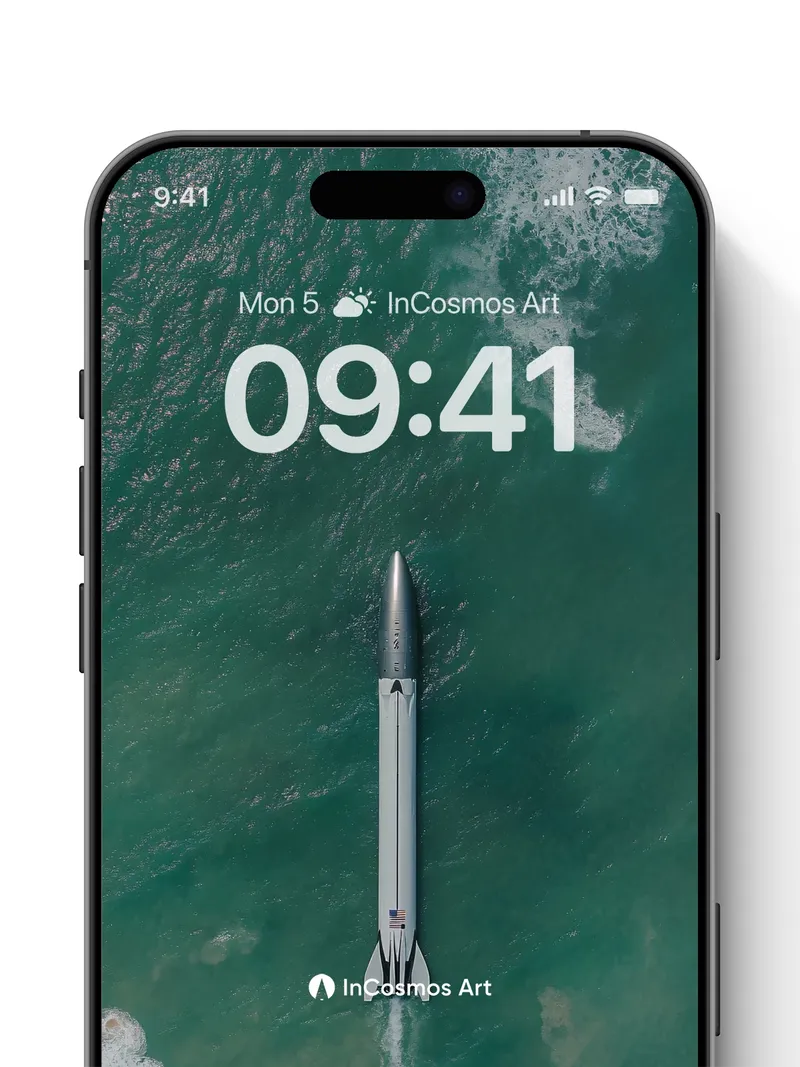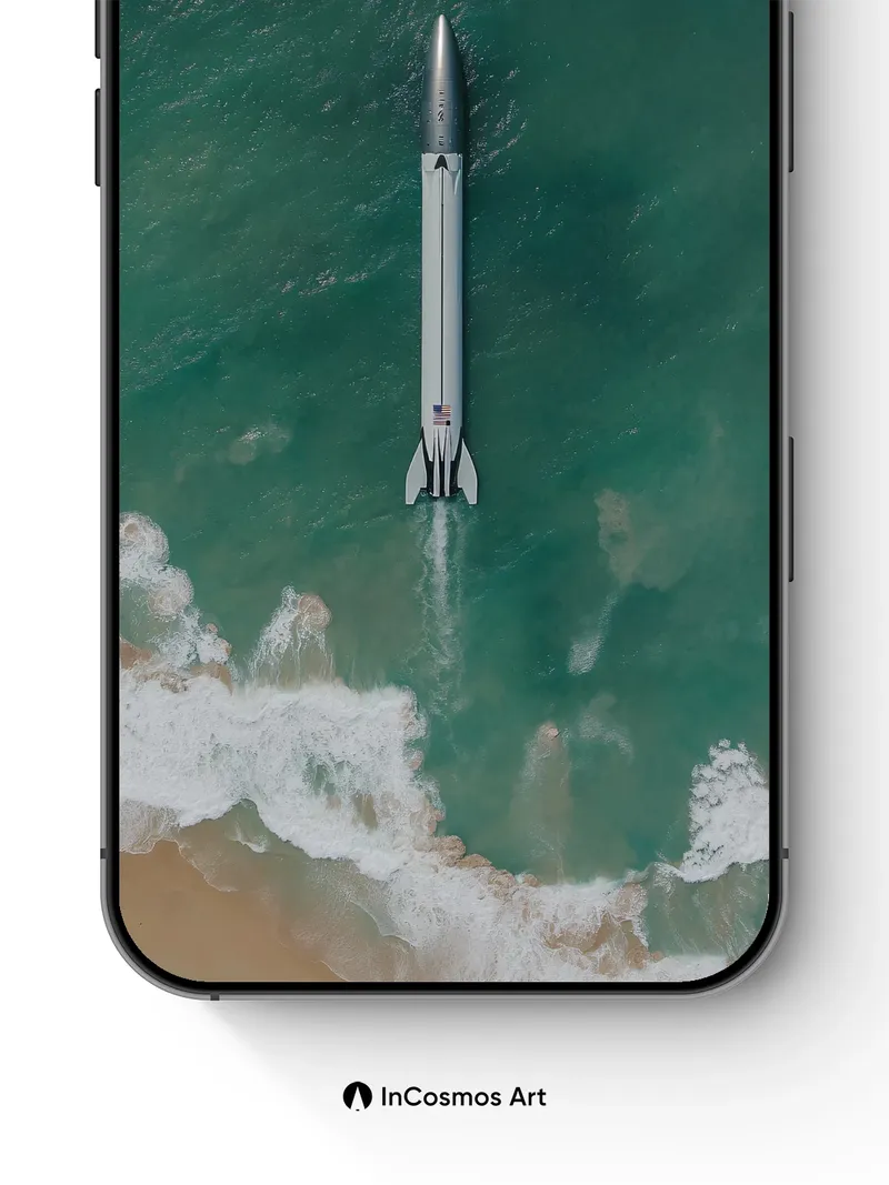 Oceanic Launch Wallpaper with Celestial Trajectory