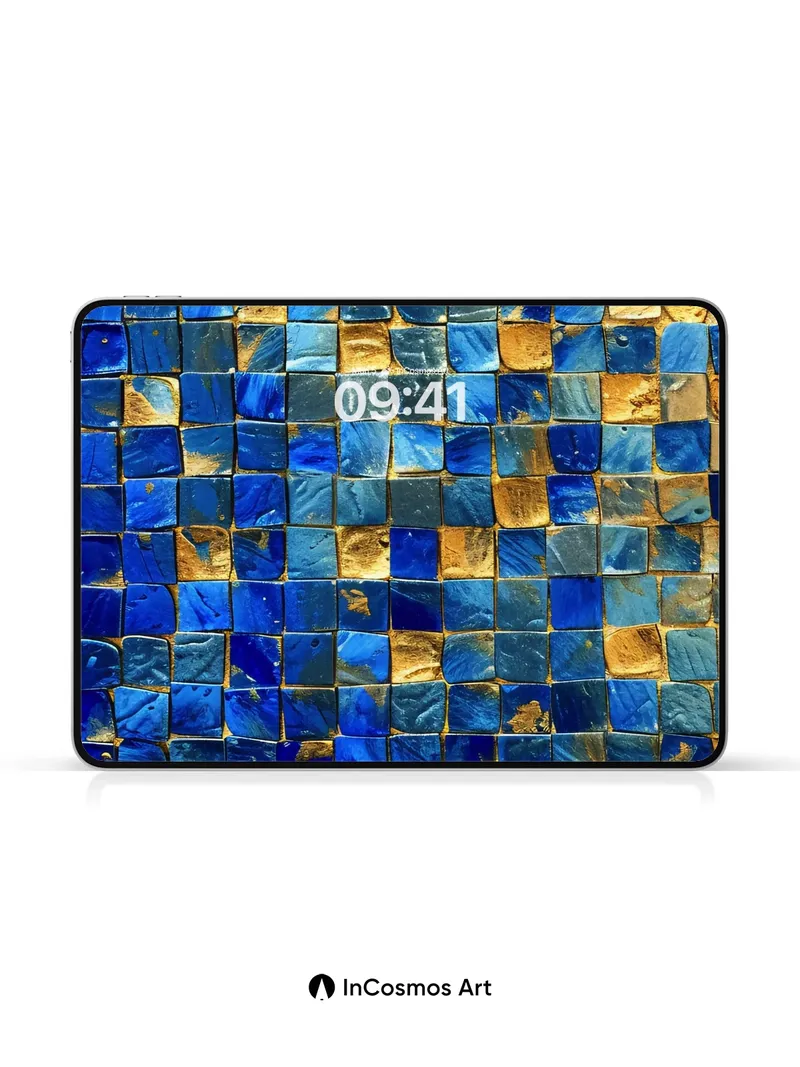 Debug page_description: Did you know ancient Roman mosaics used tesserae of glass and stone to capture light like liquid sky? Here, each tile breathes with depth—deep cobalt pools meet molten gold streaks that shimmer as if stirred by underwater currents. You’re not just looking at a surface; you’re diving into a silent, sun-dappled abyss where color and texture form a living map of the deep. Share this with your best friend. Send this to your love and swap a matching set. What if every wall in your home whispered secrets of forgotten seas?