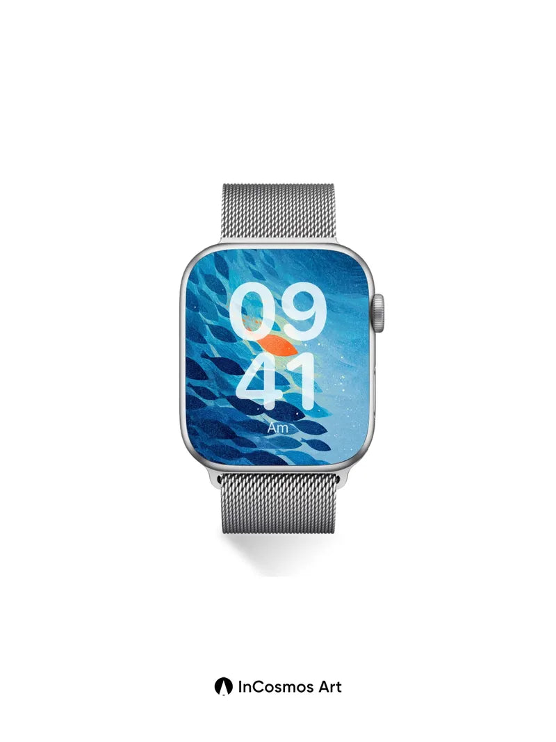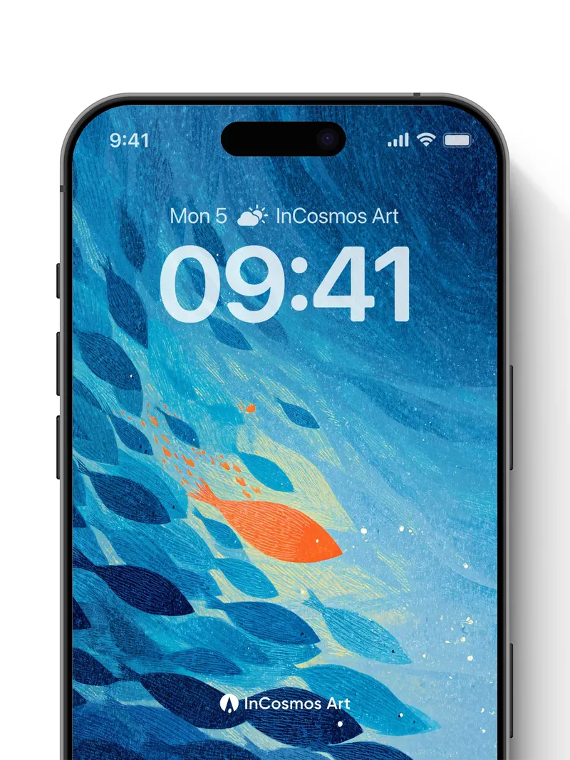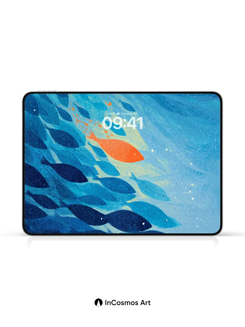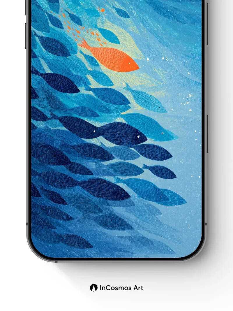 Oceanic Whisper Wallpaper with Lone Orange Fish