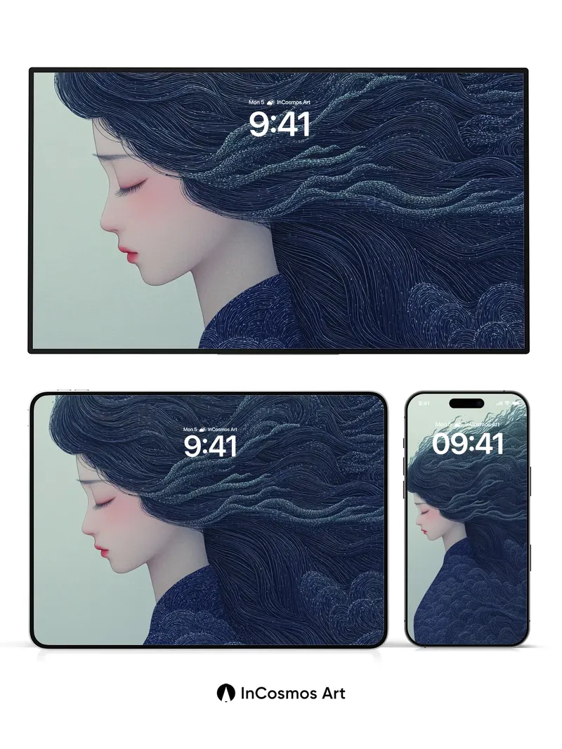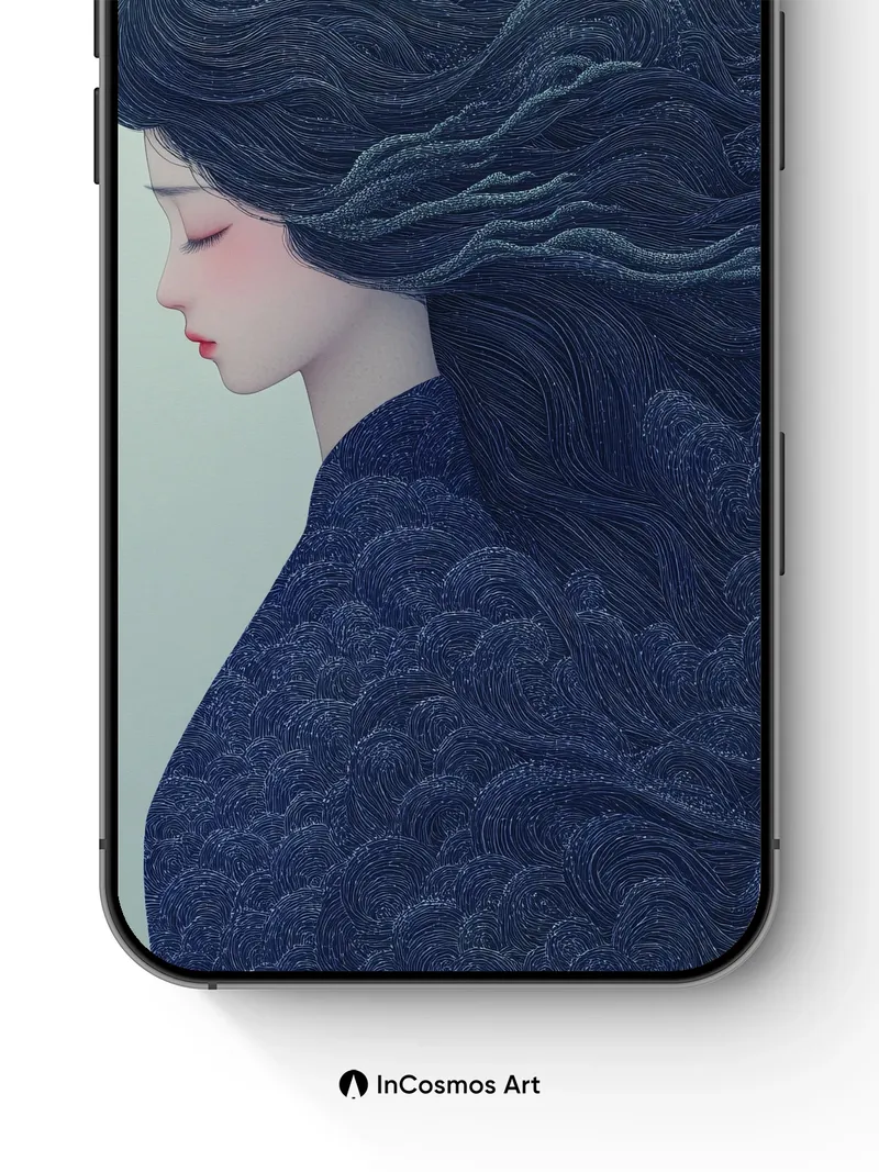 Oceanic Whisper Wallpaper with Wave-Weaved Hair