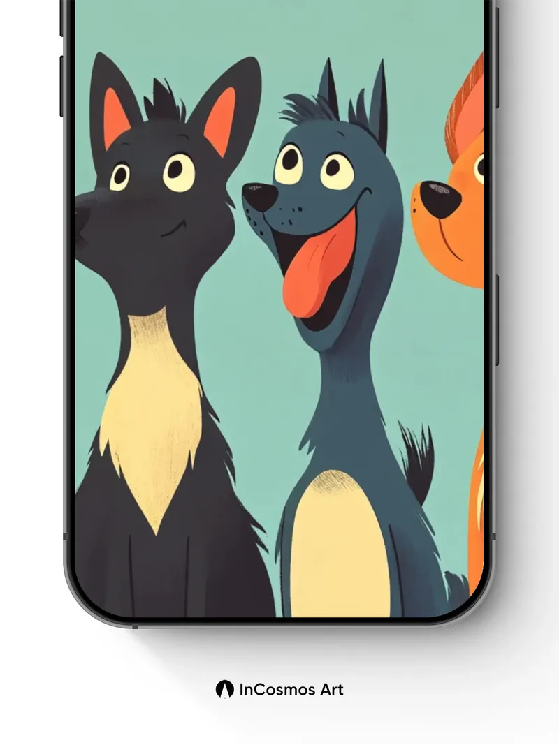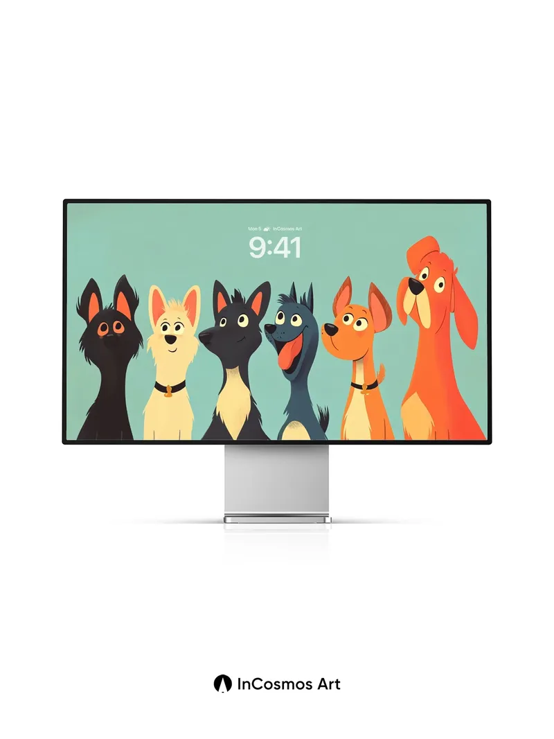Debug product.metafields.custom.desc: Did you know that animated dogs in classic cartoons often had expressive eyes designed to mirror human emotions? Here, six stylized canines stand in a soft teal glow, their fur rendered in smooth, velvety gradients that seem to breathe with each shift of light. Their wide-eyed curiosity and gentle smiles invite you into a world where loyalty meets whimsy, where every wagging tail tells a story.