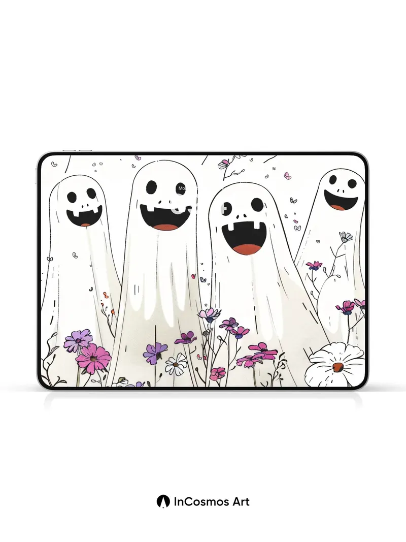 Debug page_description: Did you know that in Japanese folklore, spirits often appear during cherry blossom season? These translucent figures float above a meadow where petals drift like whispered secrets, their wide grins glowing softly against the pale sky. You’ll feel the cool breeze of their breath on your skin as colors bloom around them—each flower a tiny heartbeat in the stillness. Share this with your best friend. Send this to your love and swap a matching set. What if ghosts only showed up when nature was at its most joyful?