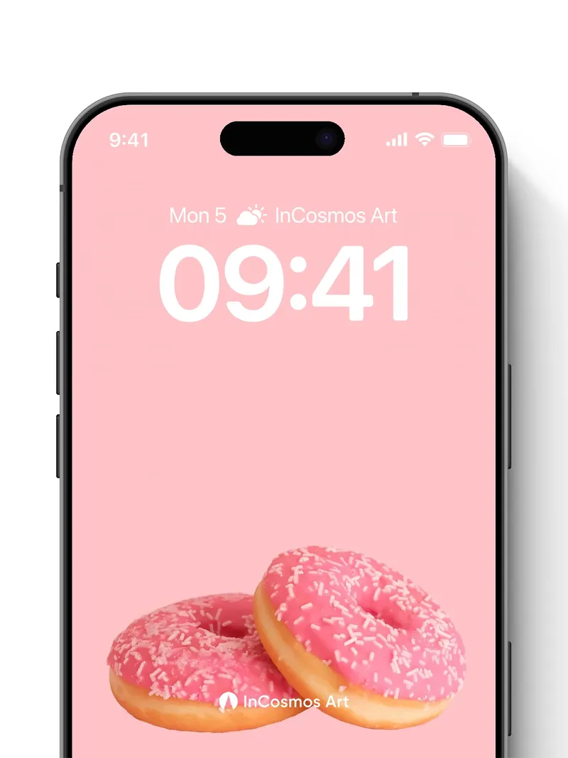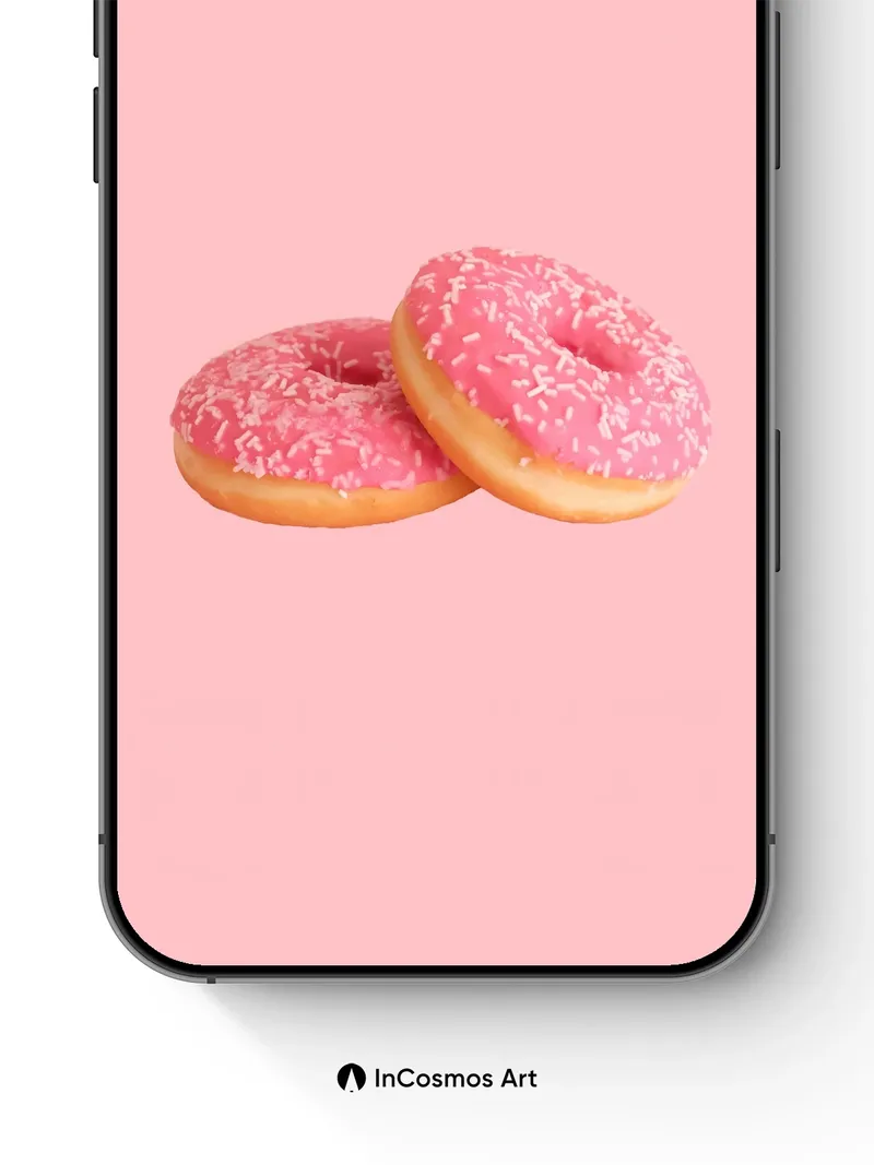 Did you know sprinkles were originally invented to add texture to confections in 19th-century Europe? Here, they dance across glossy pink glaze like tiny sugar stars, each one catching the light as if breathing life into a pastel dream. The donuts rest gently against a soft coral void, their golden edges glowing with quiet warmth—inviting you to sink into sweetness without ever leaving your wall.