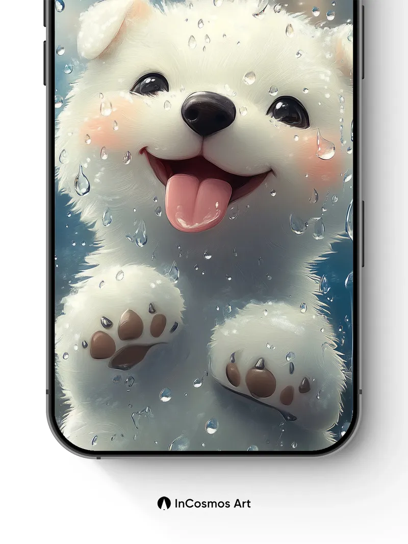 Playful Pup Wallpaper Behind Rain-Drenched Glass