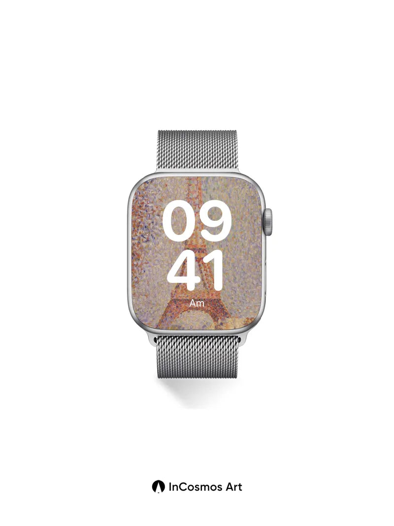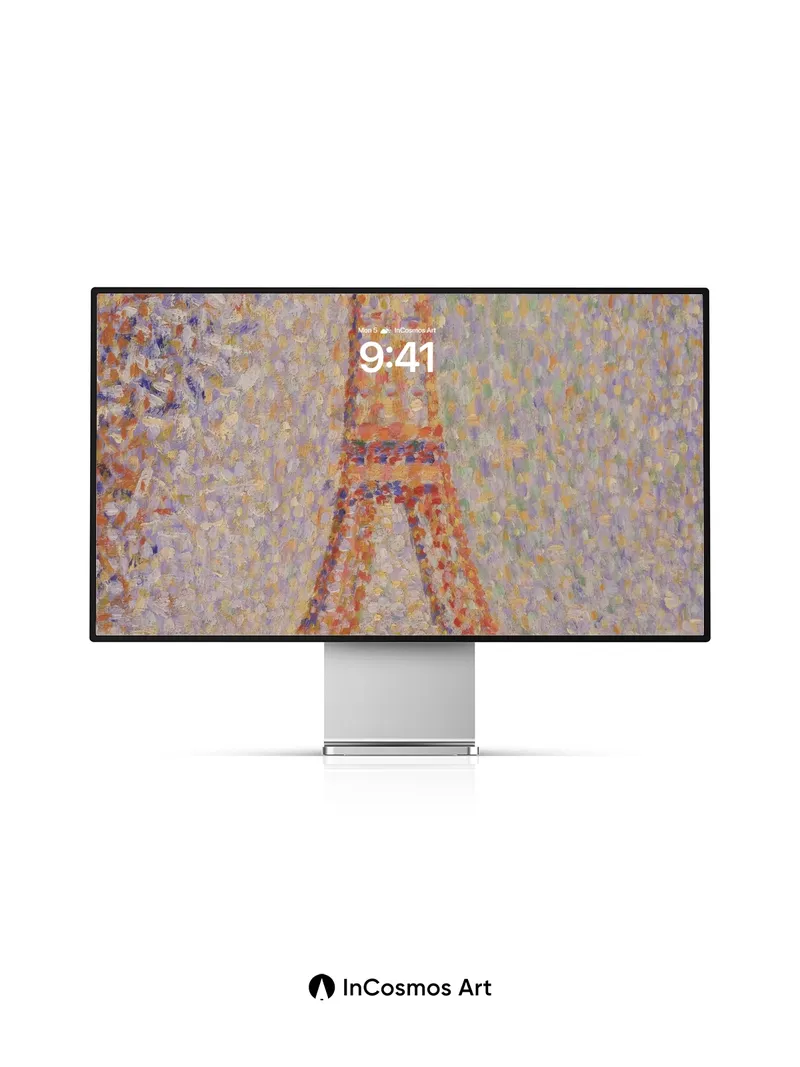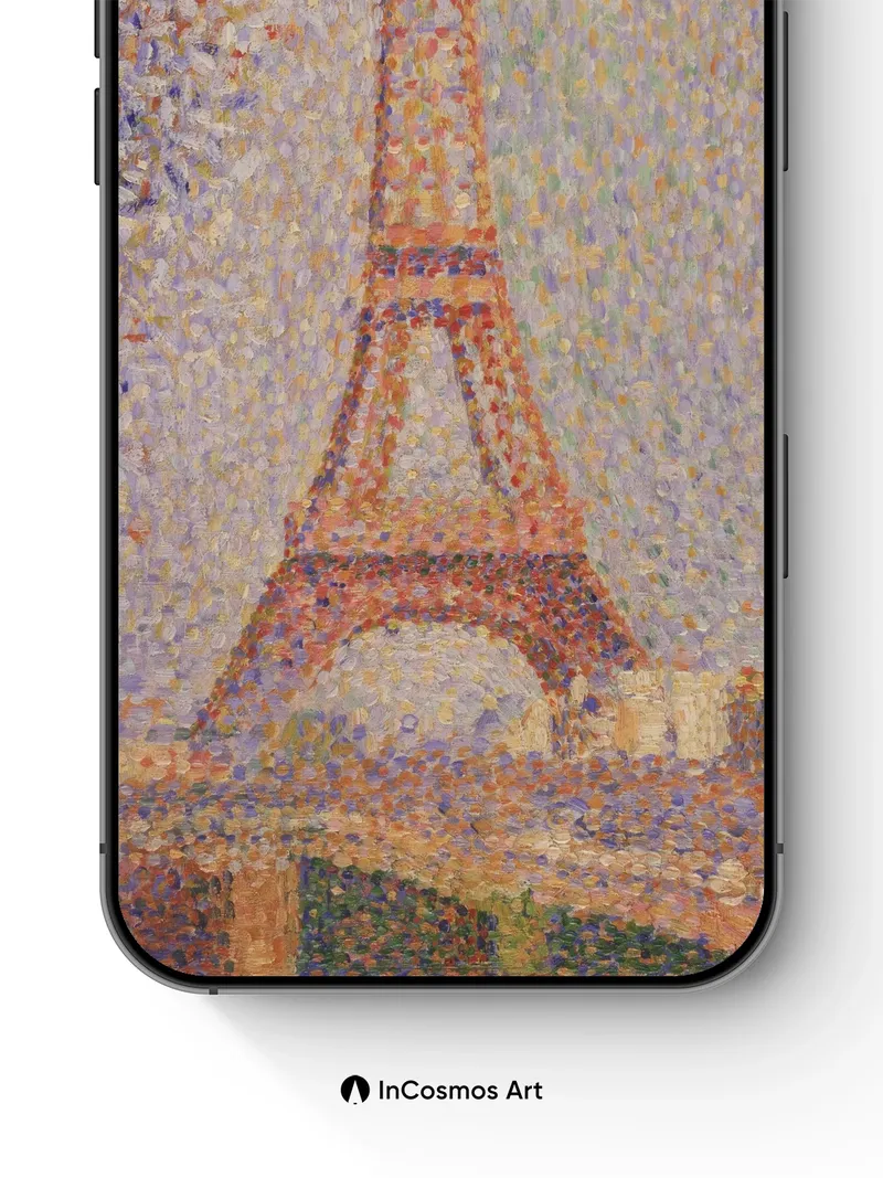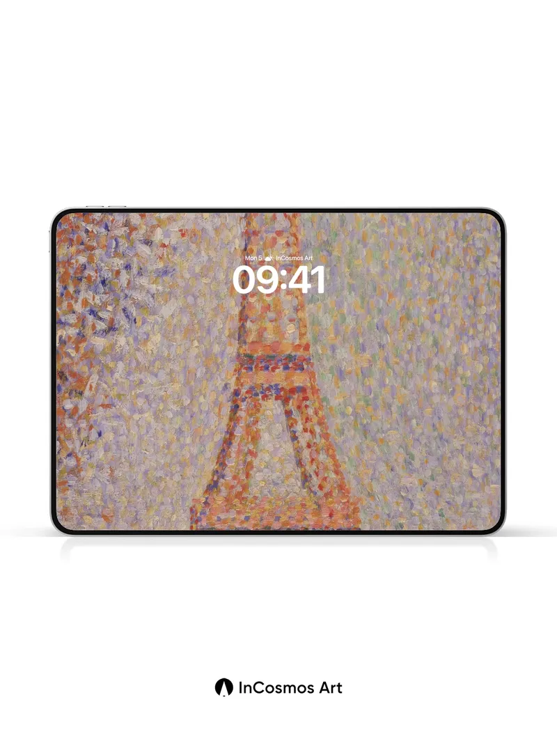 Pointillist Paris Wallpaper with Eiffel Tower Glow