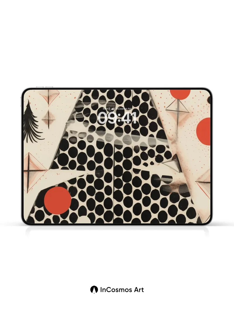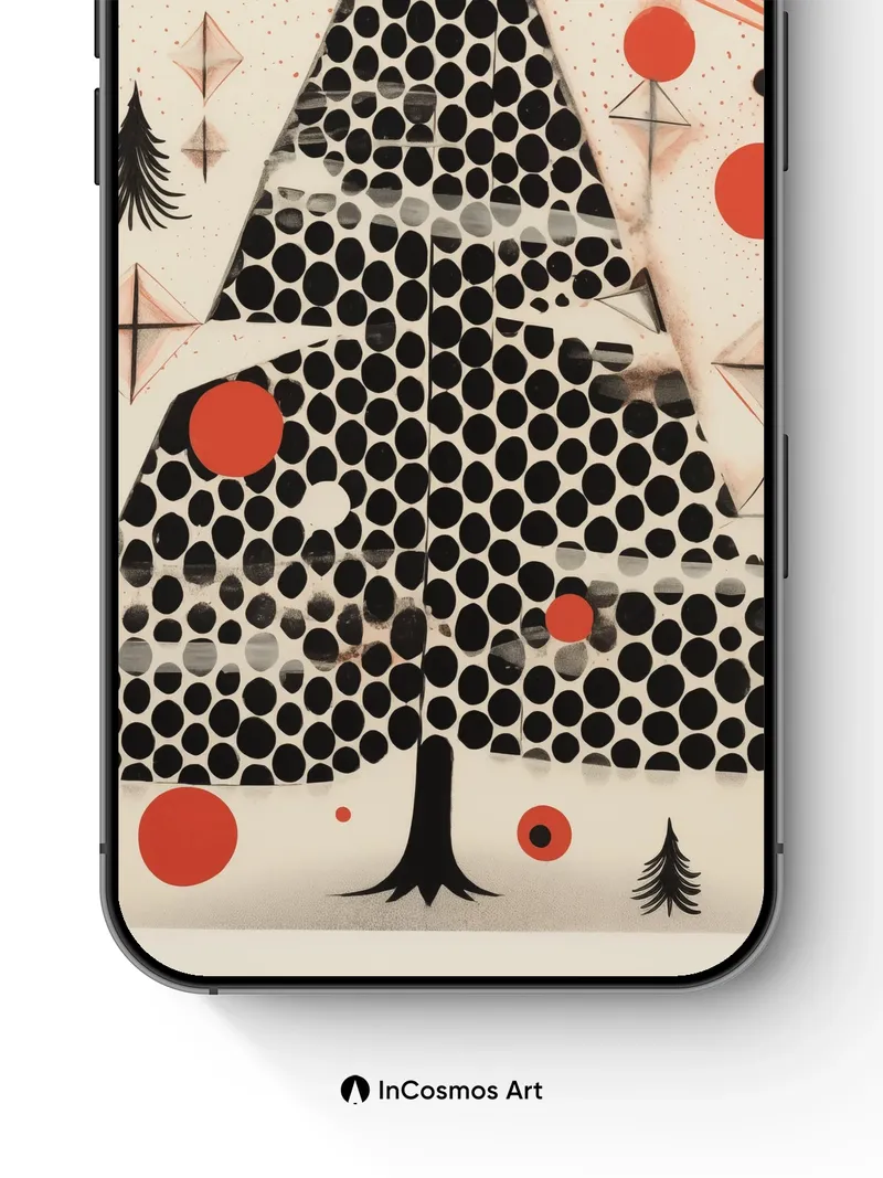 Debug page_description: Did you know that the repetition of dots in art can mimic neural patterns in the brain? Here, black spheres pulse across a triangular tree like stars in a quiet cosmos, while coral waves ripple above like ancient topography. The surface breathes—each dot a tiny mirror reflecting light as if it were alive, and the red circles glow like distant lanterns in a dream forest. Share this with your best friend. Send this to your love and swap a matching set. What if every tree in your home whispered secrets only you could hear?