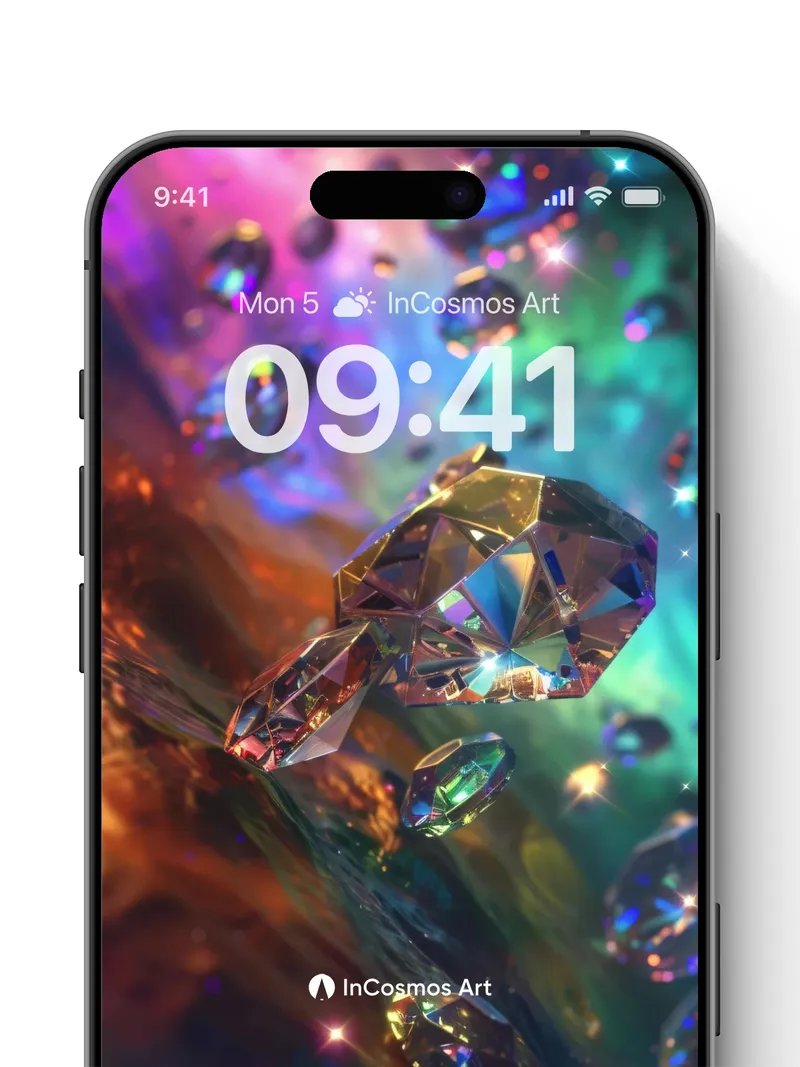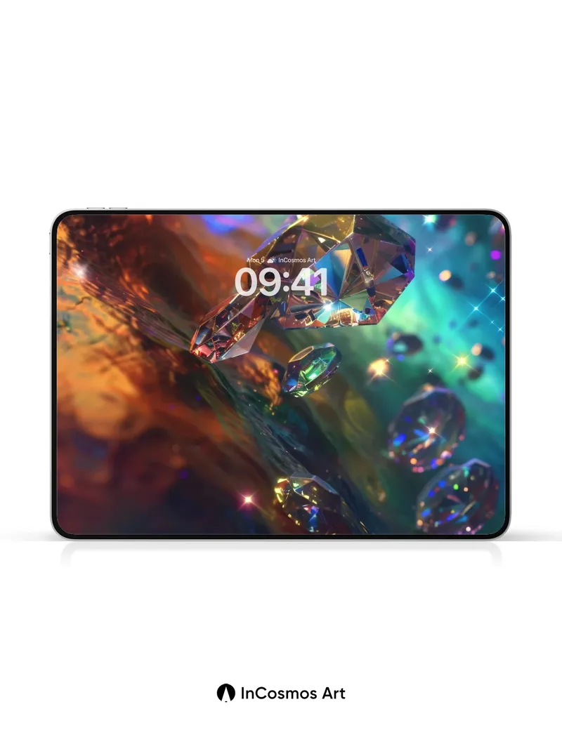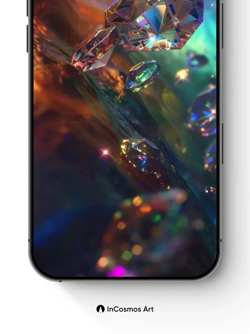 Prismatic Drift Wallpaper with Floating Crystals