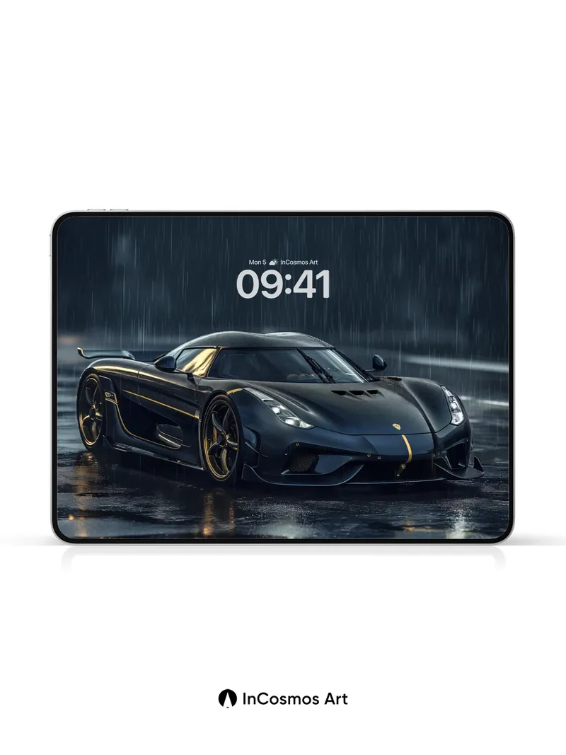 Rain-Slicked Velocity Wallpaper with Gold Veins
