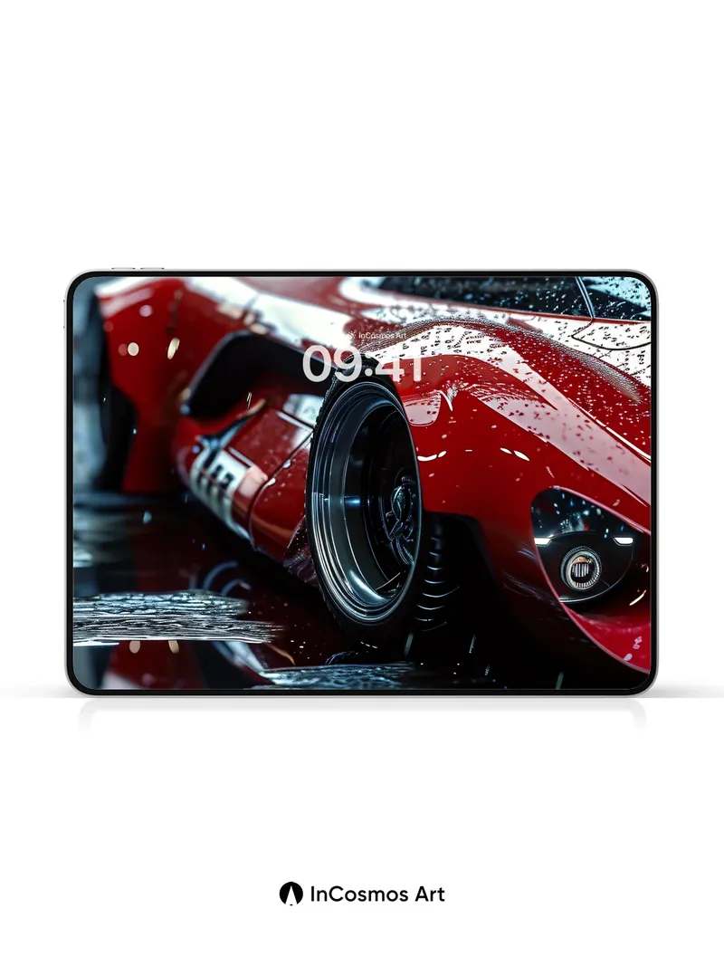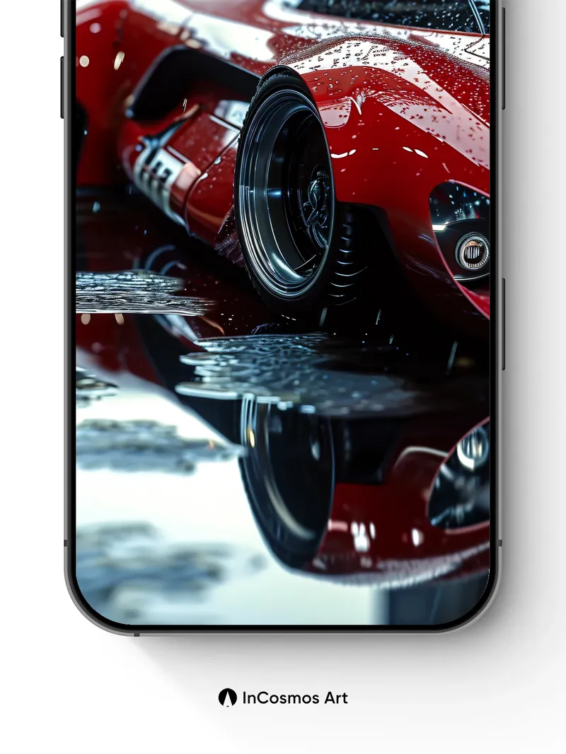 Rain-Slicked Velocity Wallpaper with Reflective Depth