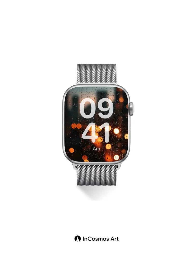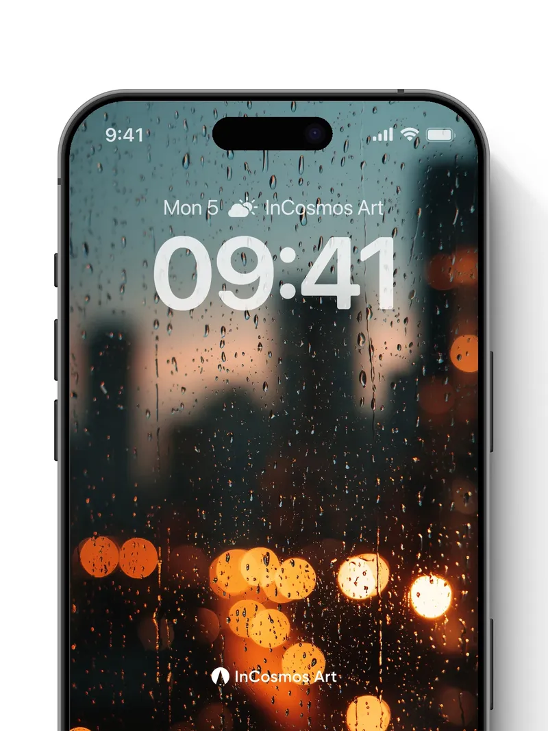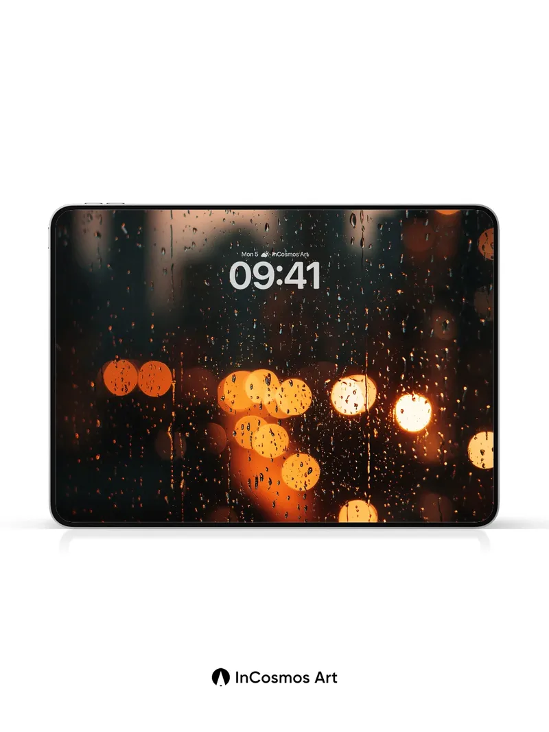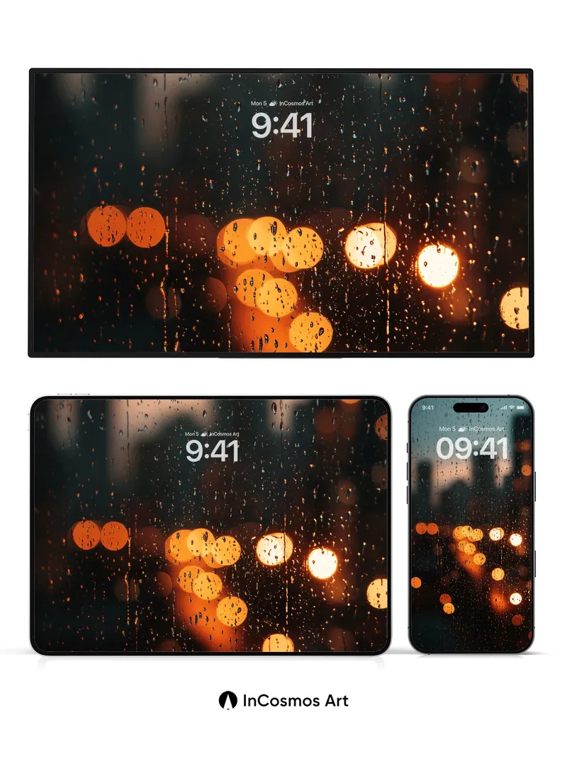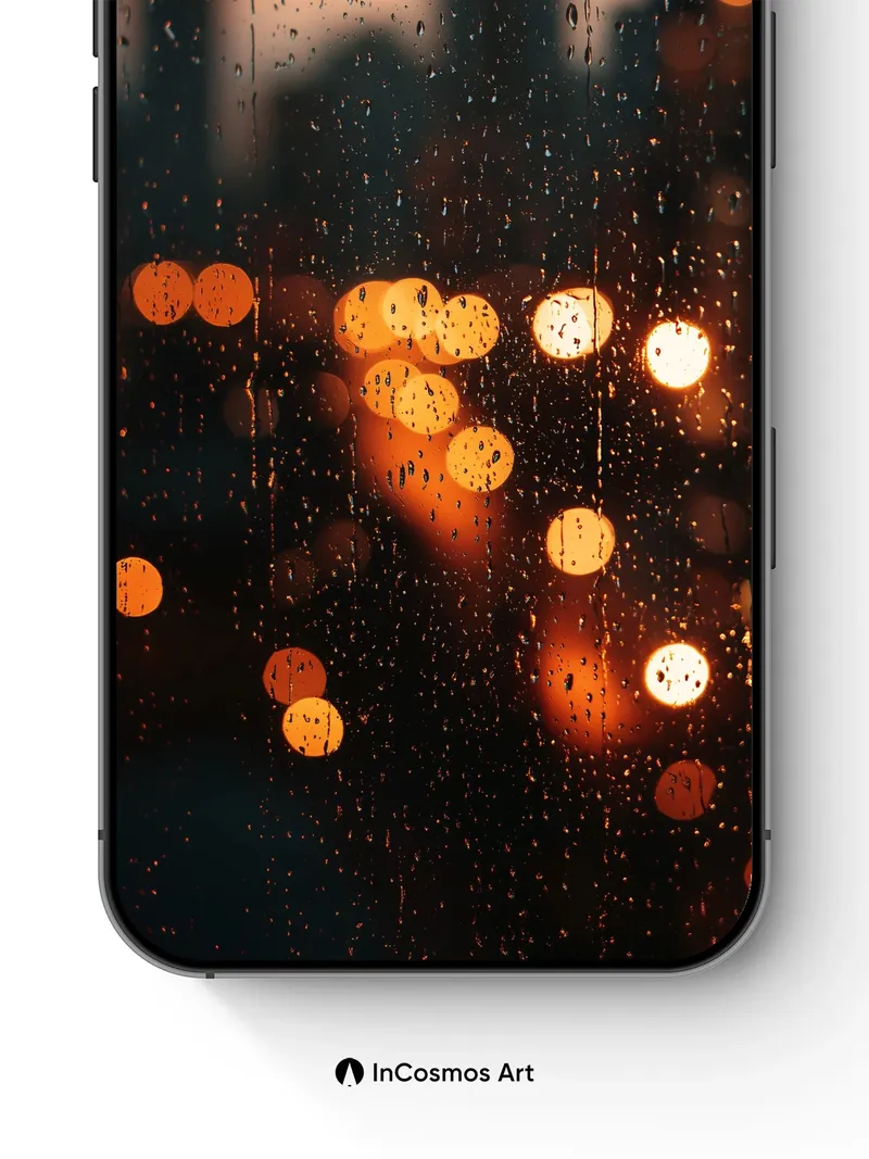Rain-Streaked City Wallpaper with Warm Bokeh Lights