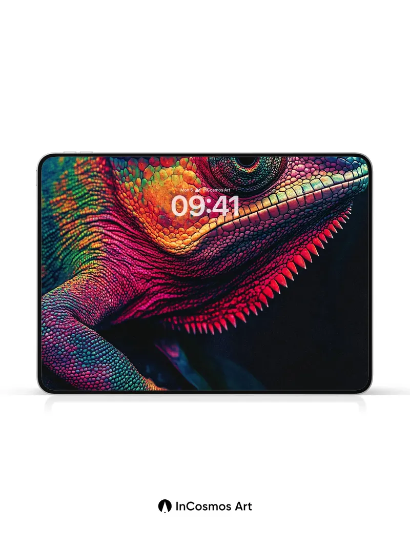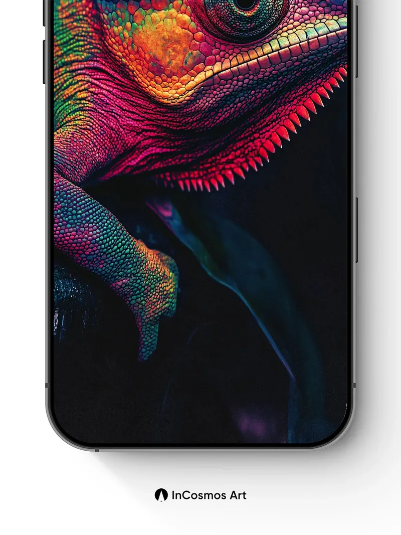 Debug page_description: Did you know chameleons change color not just for camouflage, but to communicate mood and temperature? Here, every scale pulses like a living circuit board—neon magenta bleeding into cobalt, emerald stitching through violet ridges—while the eye, a molten orb of amber and obsidian, watches the world in slow, hypnotic focus. This is nature’s own digital artistry, where skin becomes screen and silence hums with unseen energy. Share this with your best friend. Send this to your love and swap a matching set. What if your walls could breathe color?