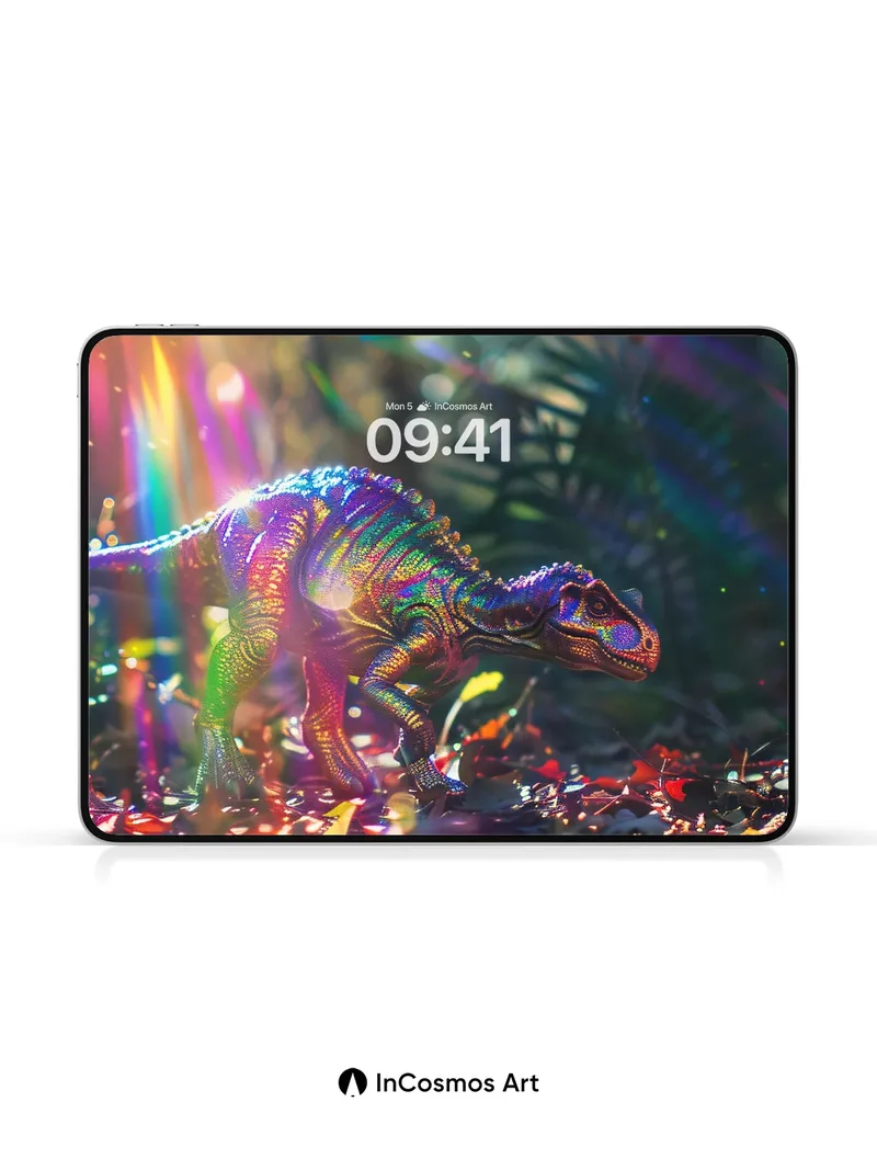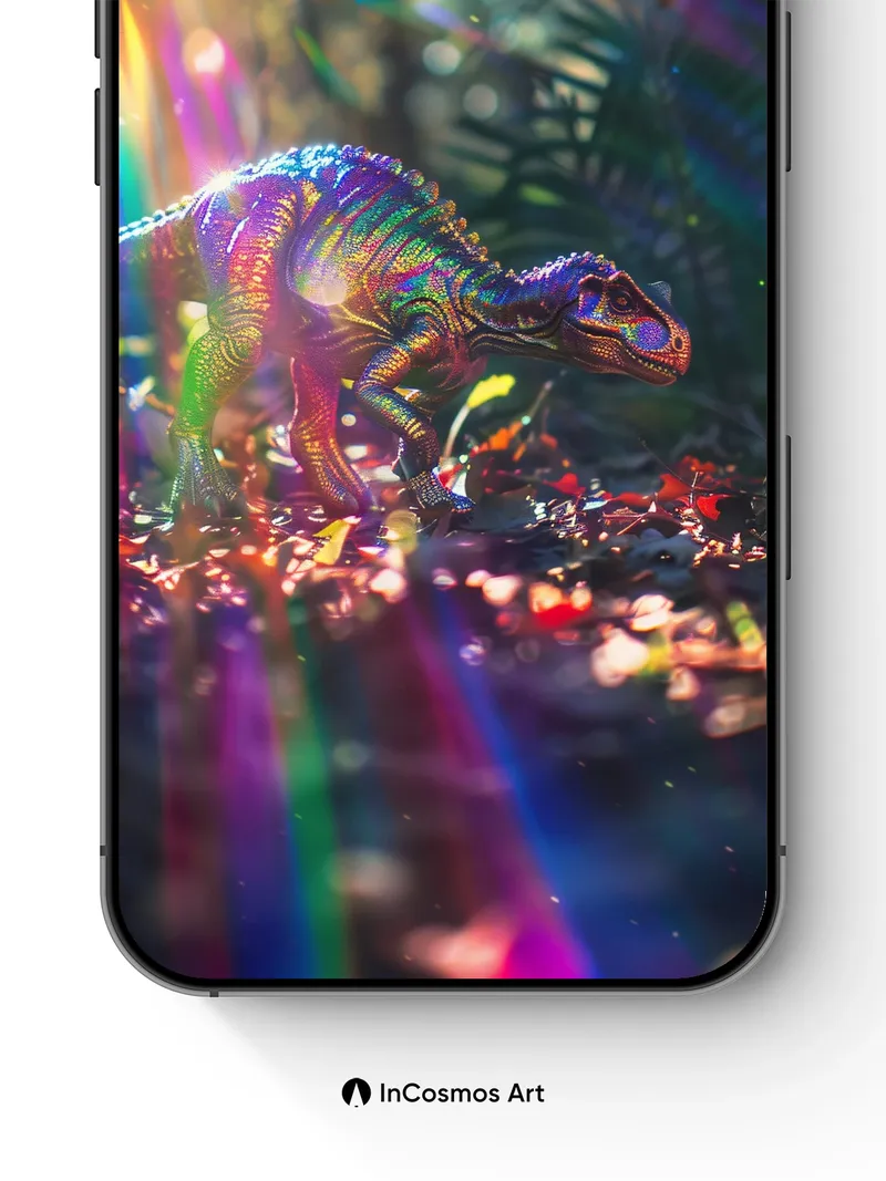 Rainbow Dino Wallpaper with Prismatic Light
