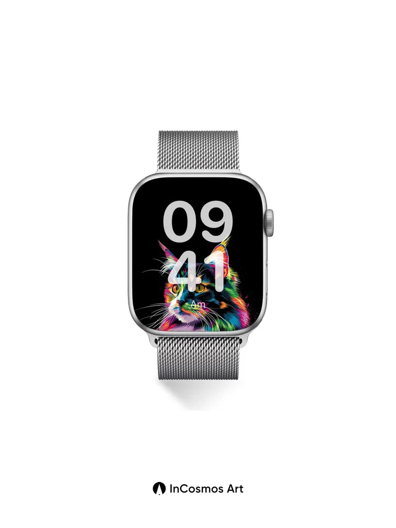 Rainbow Feline Wallpaper with Cosmic Splatter
