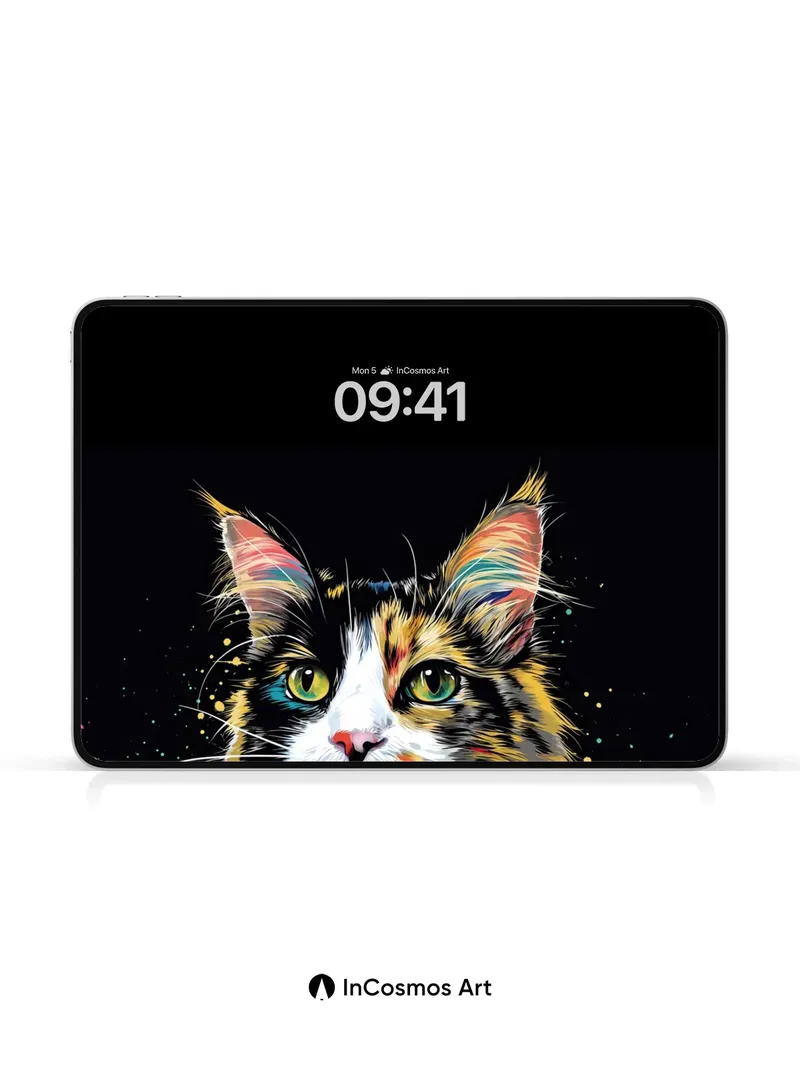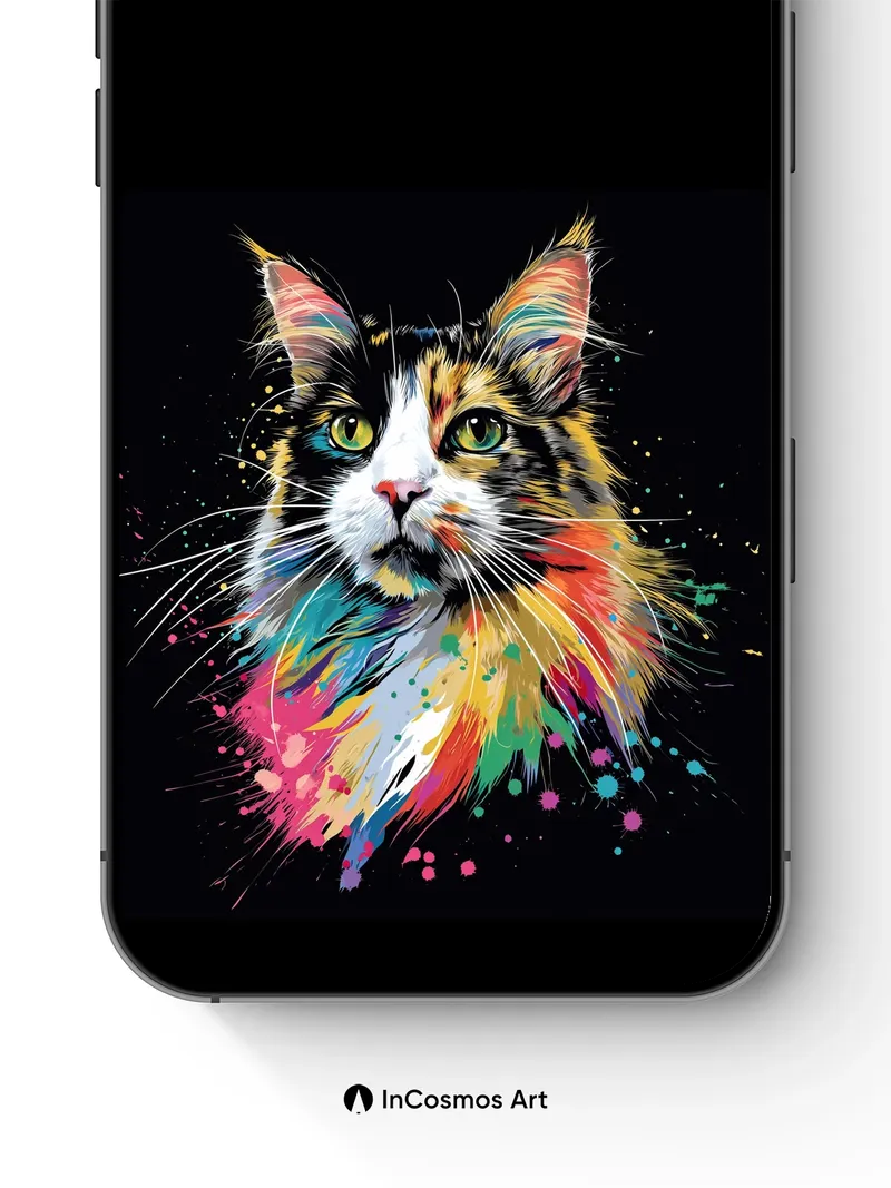Rainbow Feline Wallpaper with Cosmic Splatter