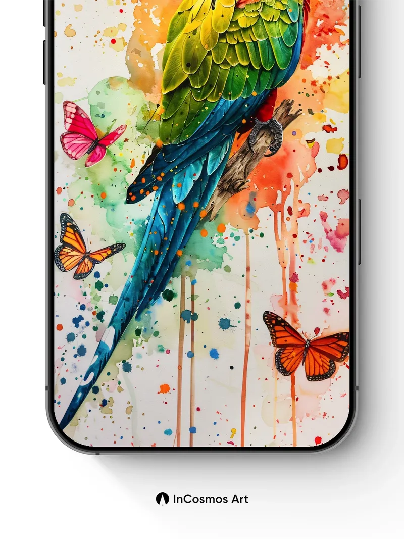 Rainbow Parrot Wallpaper with Fluttering Wings