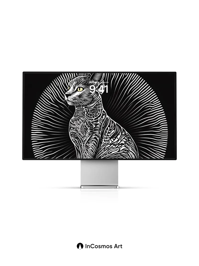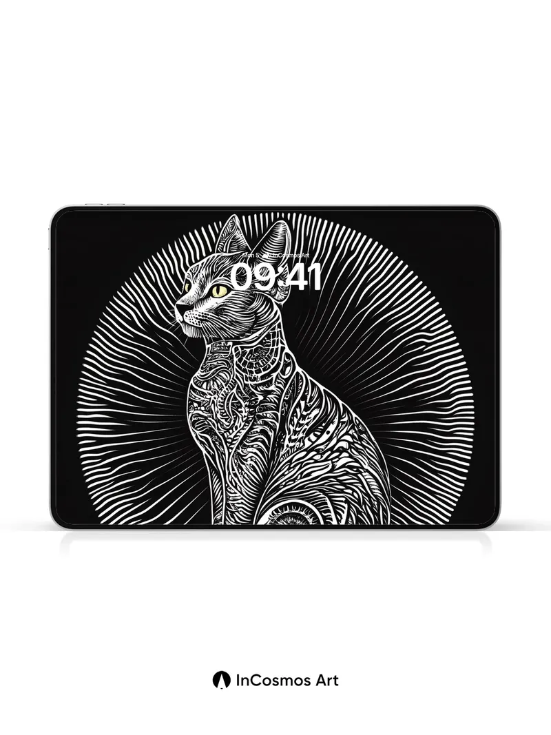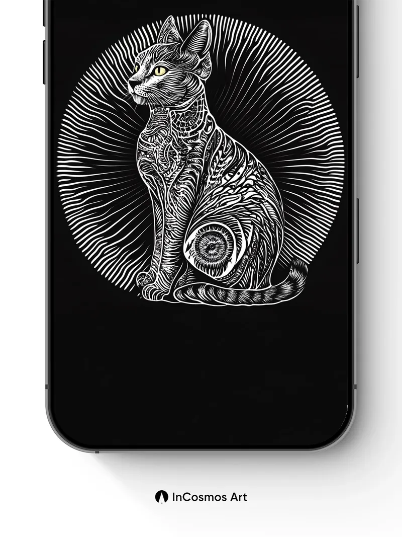 Sacred Geometry Cat Wallpaper with Cosmic Lines