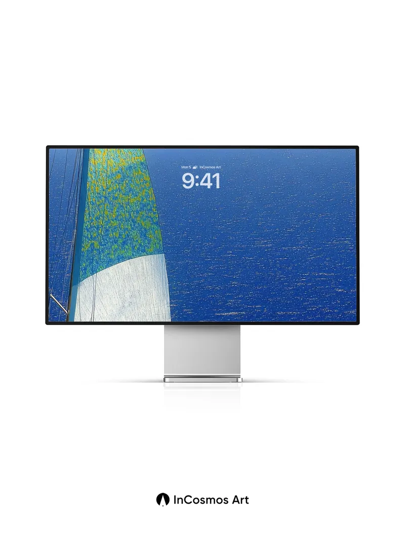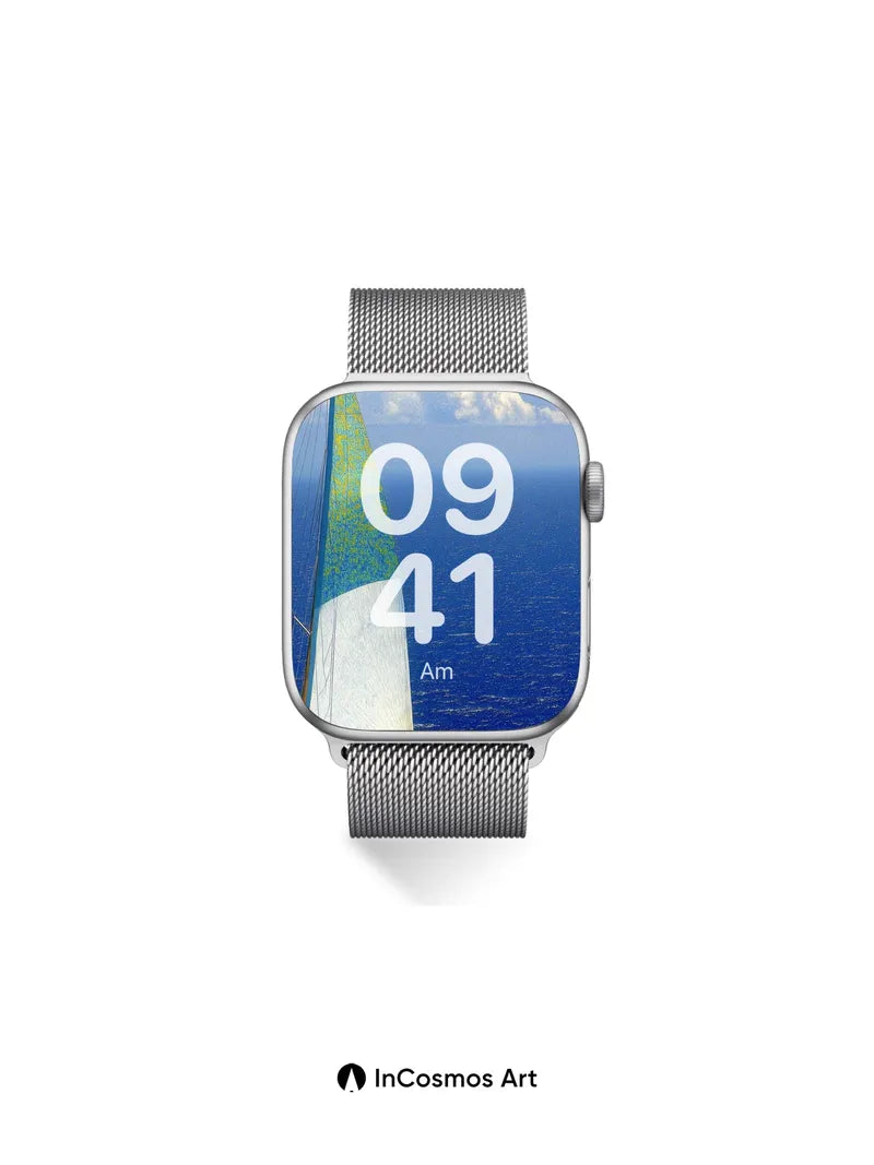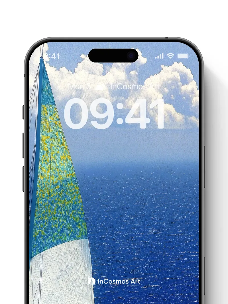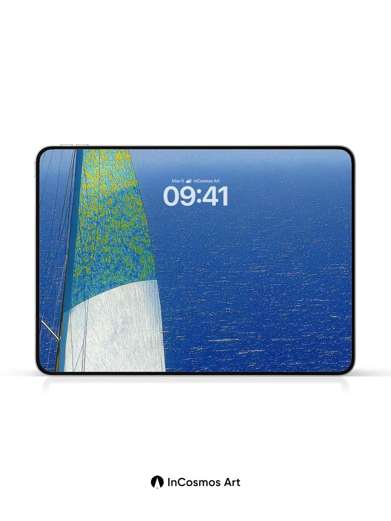 Debug product.metafields.custom.desc: Did you know the sails of old oceanic vessels were once treated with whale oil to withstand salt and wind? Here, light crawls over the textured weave of a taut sail, where turquoise and gold blend like liquid pigment against an endless blue horizon. The sea below breathes in rhythm with the sky, each wave a whisper of motion beneath a canvas of cloud-streaked clarity.