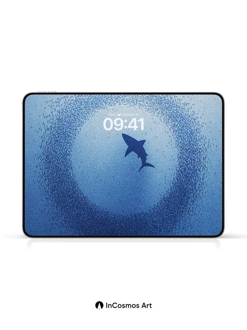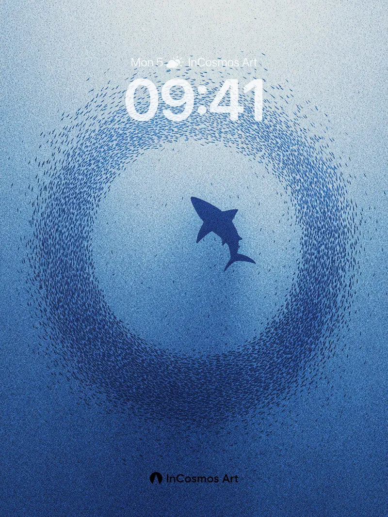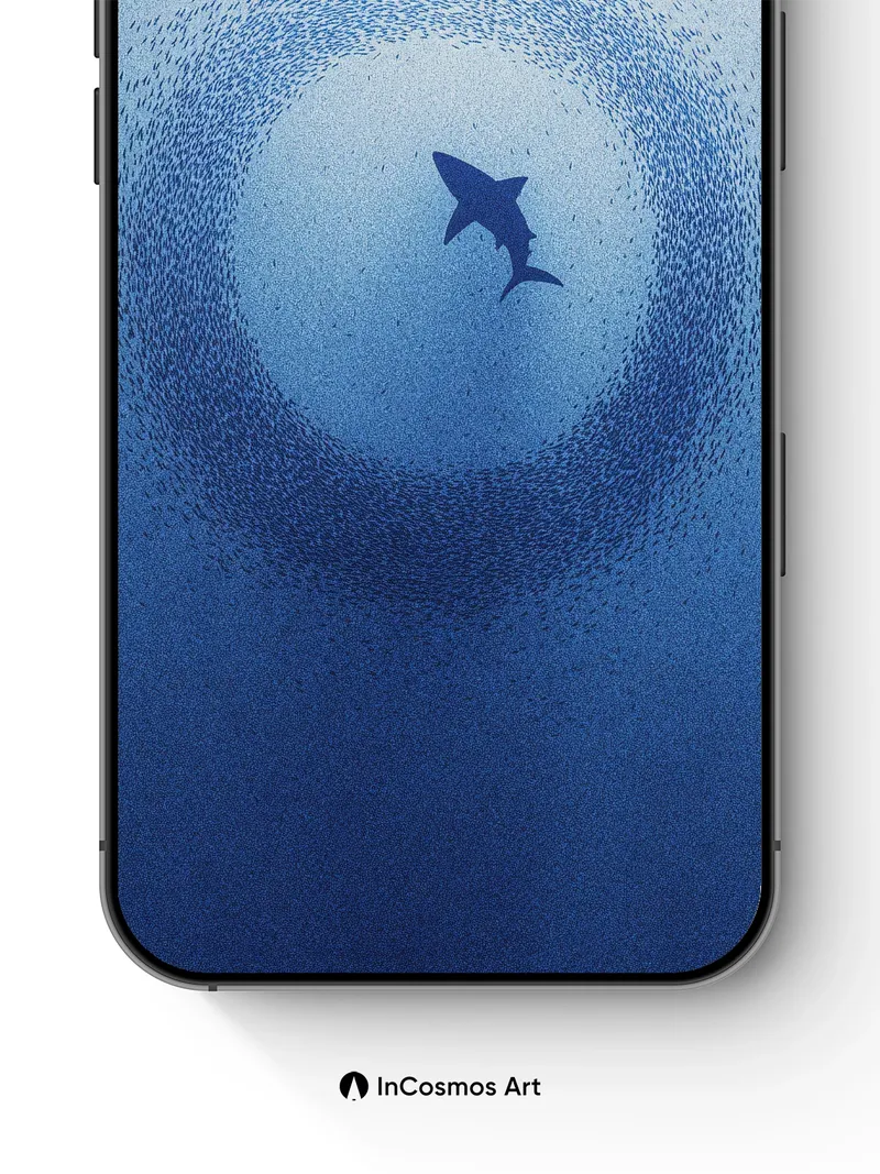 Debug page_description: A school of silver fish spirals into a deep blue whirlpool, creating a living tunnel of light and motion. Did you know this defensive formation is called a bait ball? It creates a dizzying optical illusion that confuses predators like the shark waiting in the center. A school of silver fish spirals into a deep blue whirlpool, creating a living tunnel of light and motion. Did you know this defensive formation is called a bait ball? It creates a dizzying optical illusion that confuses predators like the shark waiting in the center. Share this with your best friend. Send this to your love and swap a matching set. Do you feel the pull of the current?