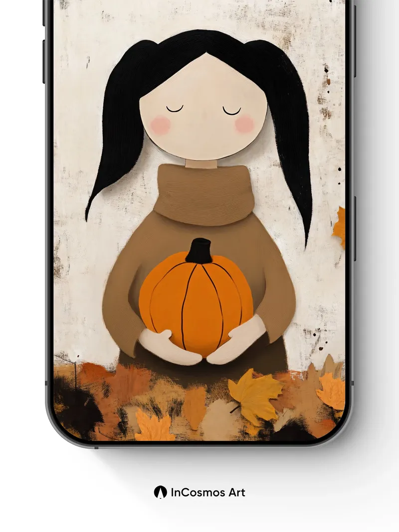 Serene Autumn Hug Wallpaper with Pumpkin Embrace
