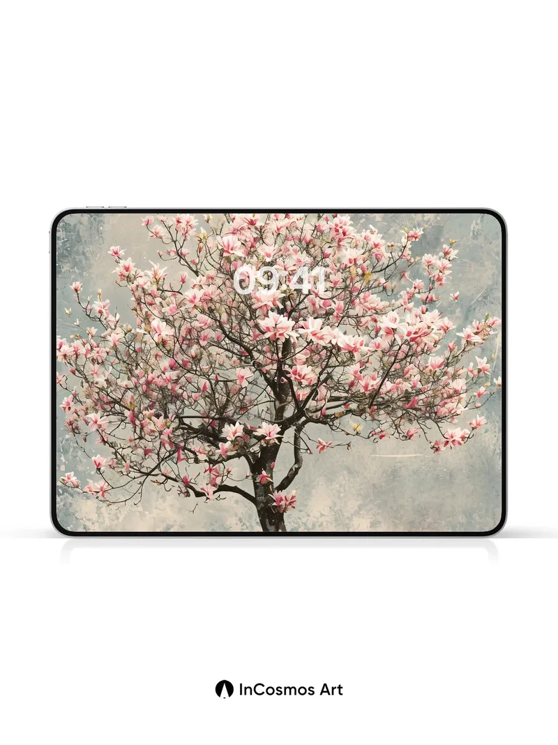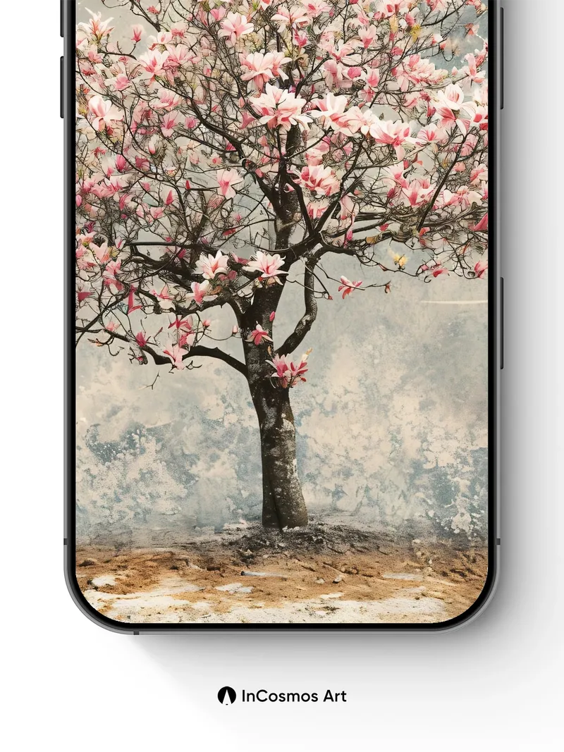 Debug page_description: Did you know magnolia petals contain a natural wax that preserves their delicate structure even after falling? Here, they hover like whispers against a weathered canvas backdrop, where light breathes through cracks and shadows crawl like slow time. The tree stands alone, its branches reaching not for sky but for memory—each bloom a silent echo of spring’s fleeting promise. Share this with your best friend. Send this to your love and swap a matching set. What if trees remembered every person who stood beneath them?