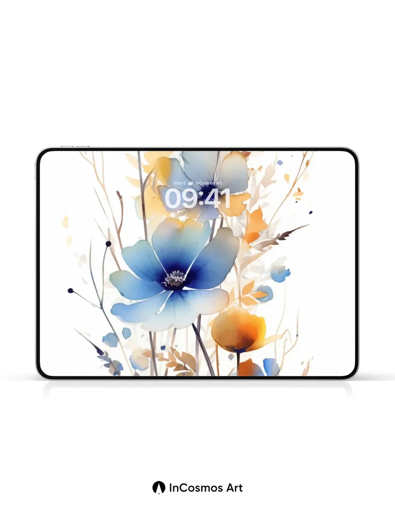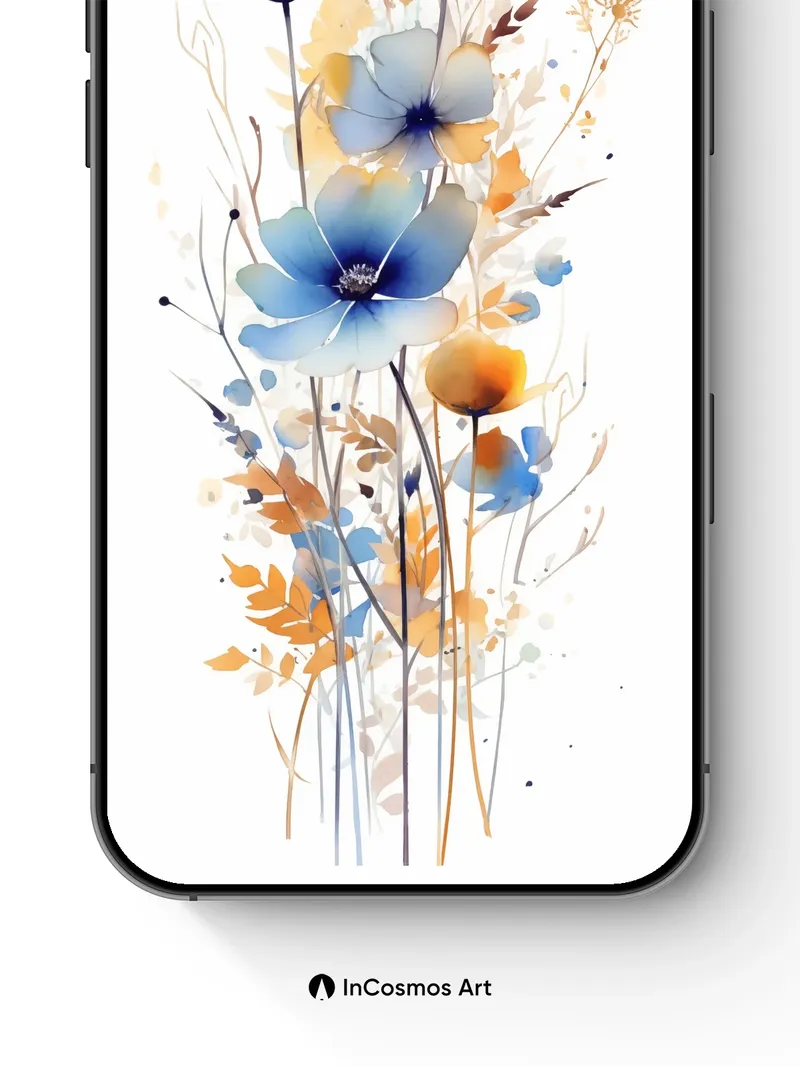 Debug product.metafields.custom.desc: Did you know watercolor pigments can float like mist on paper, creating translucent layers that breathe with light? Here, blue poppies unfurl in soft gradients, their petals glowing as if lit from within, while golden leaves drift like whispers through a quiet meadow. The stems rise like delicate threads of memory, connecting earth to sky in a silent dance of color and stillness.