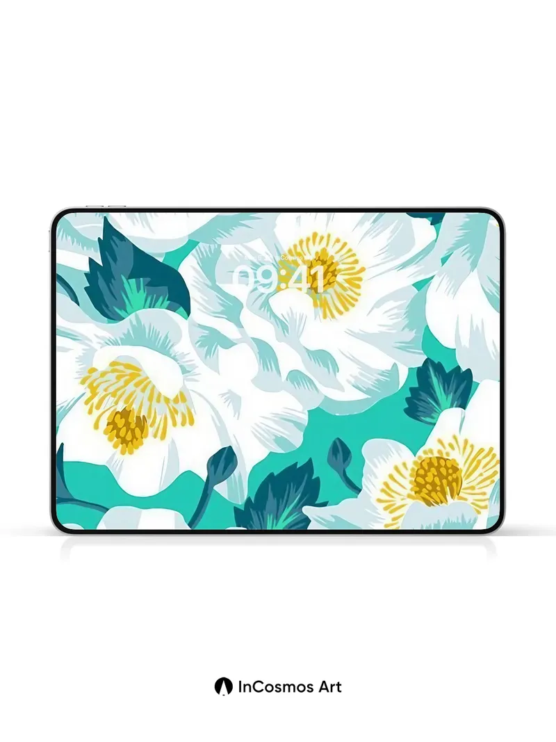 Serene Bloom Wallpaper with Teal Echoes