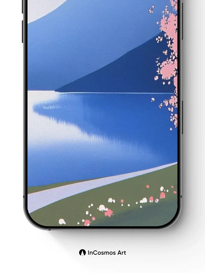 Serene Cherry Bloom Wallpaper with Mountain Mirror