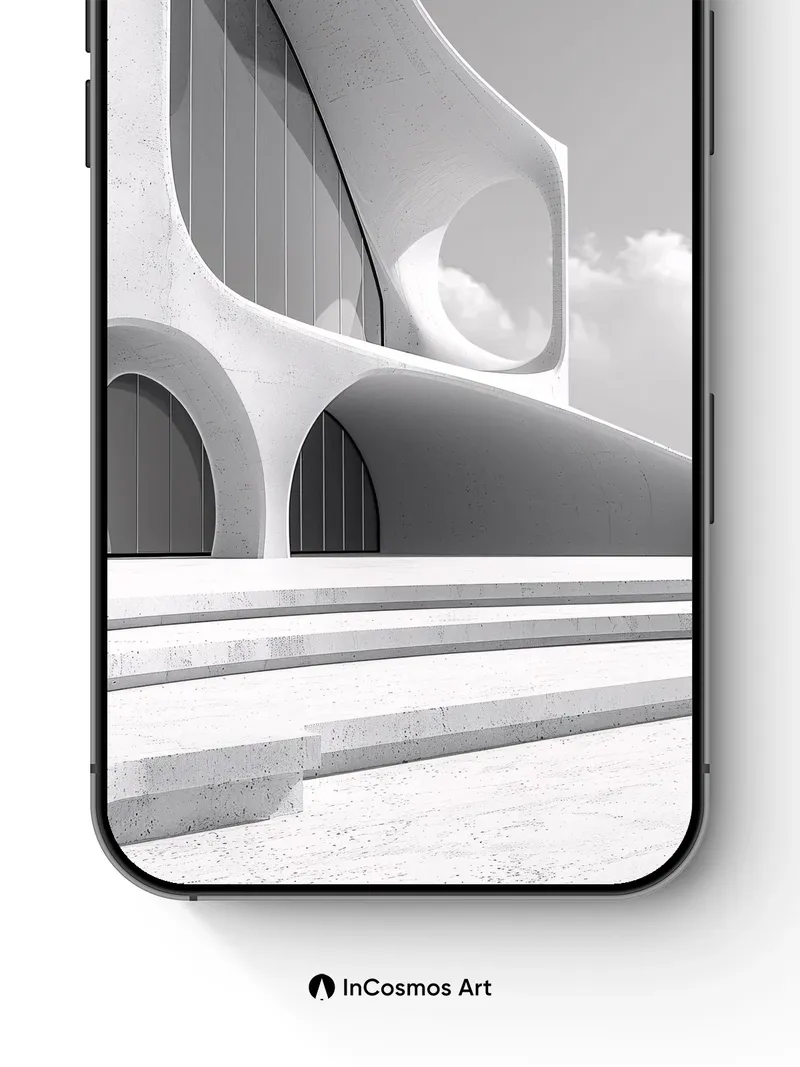 Serene Concrete Curves Wallpaper with Floating Light