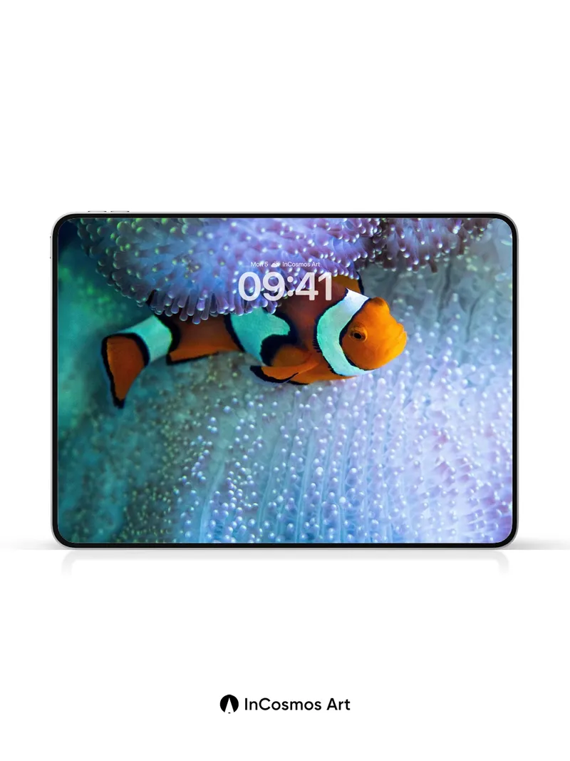Serene Coral Embrace Wallpaper with Clownfish Whispers