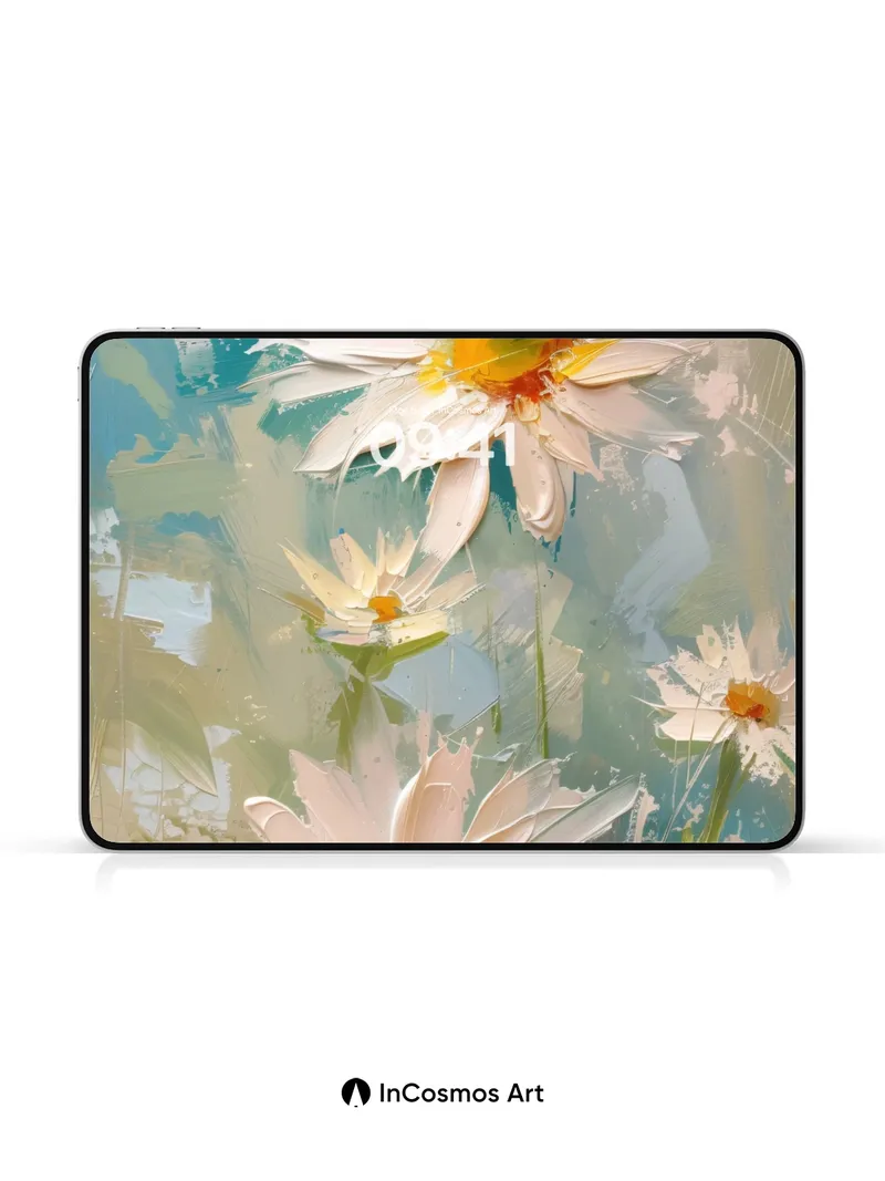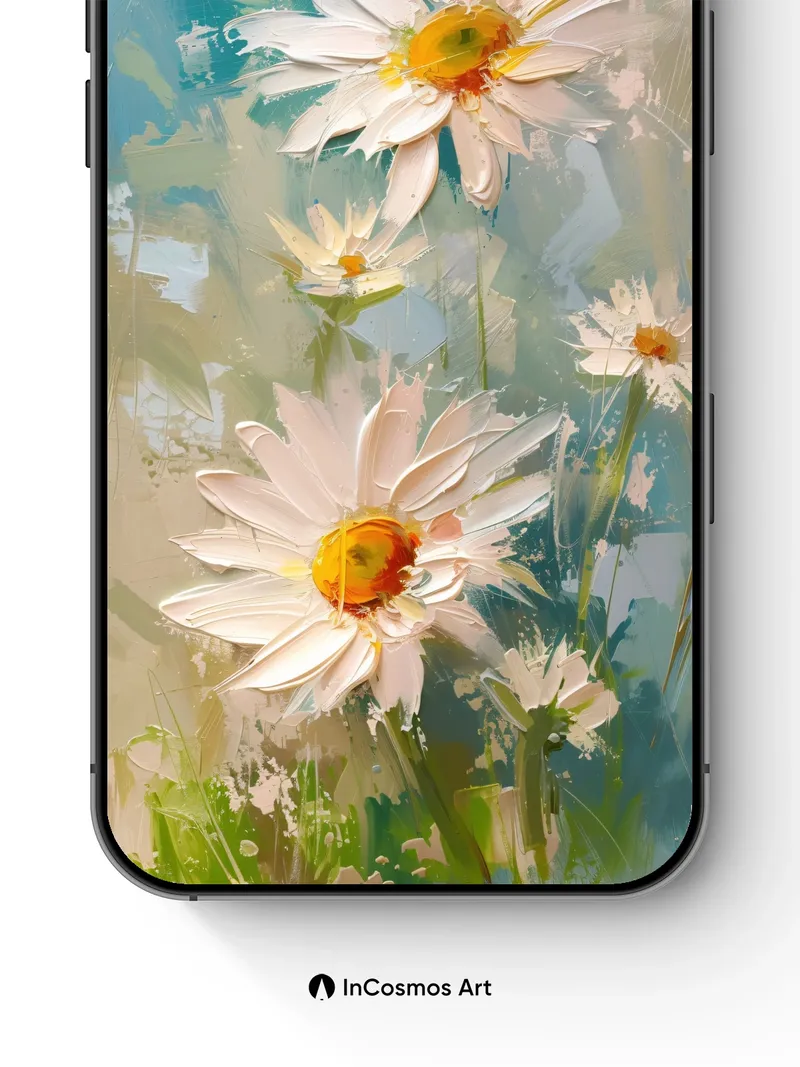 Serene Daisy Field Wallpaper with Impressionist Brushwork