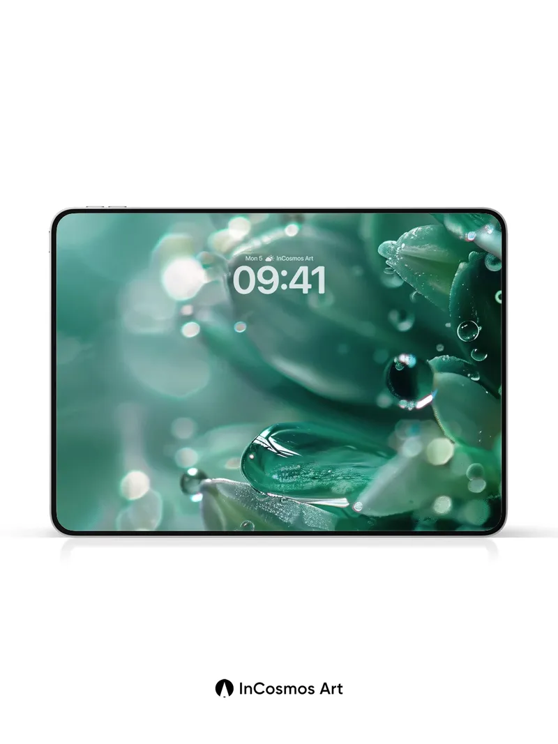 Serene Dewdrop Wallpaper with Glasslike Leaves