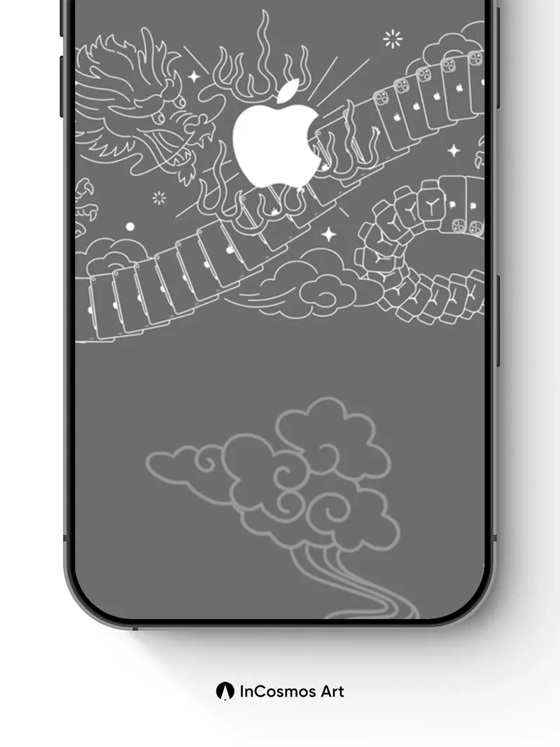 Debug product.metafields.custom.desc: Did you know ancient Chinese scrolls were often painted with hidden symbols to protect wisdom? Here, a dragon coils through misty clouds, its scales etched in silver ink, while the Apple logo rests like a moon in its spine—subtle, sacred, and glowing faintly from within. You feel the weight of tradition meeting quiet innovation, as if breathing in aged parchment and digital dawn at once.