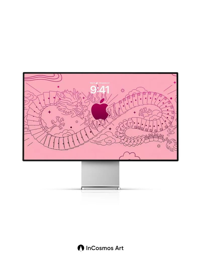 Debug product.metafields.custom.desc: Did you know ancient Chinese artisans believed dragons could control the weather, breathing life into clouds and storms? Here, a delicate pink dragon coils through misty skies, its body woven from intricate patterns and crowned with a bold, dark apple—like a myth reborn in digital form. The soft lines breathe warmth, while the contrast of the fruit hints at forbidden knowledge hidden in tradition.
