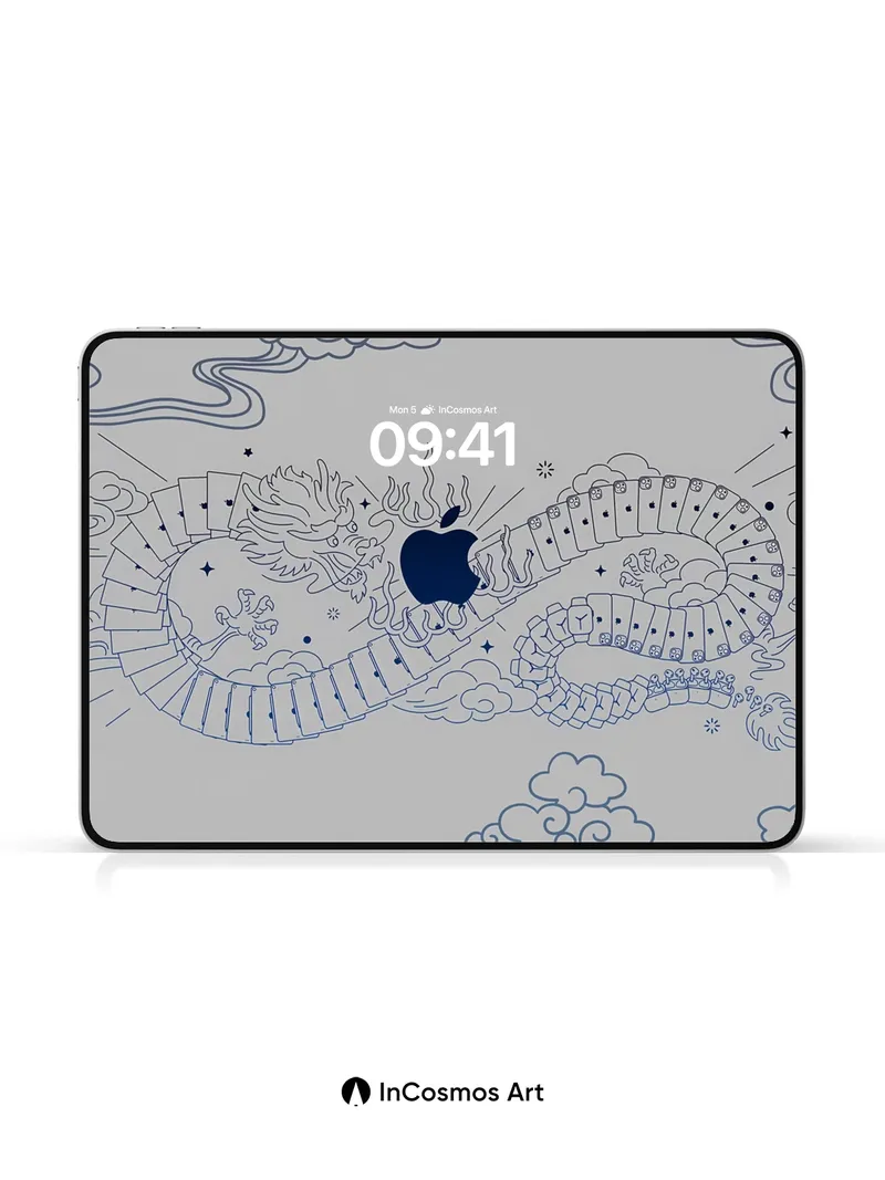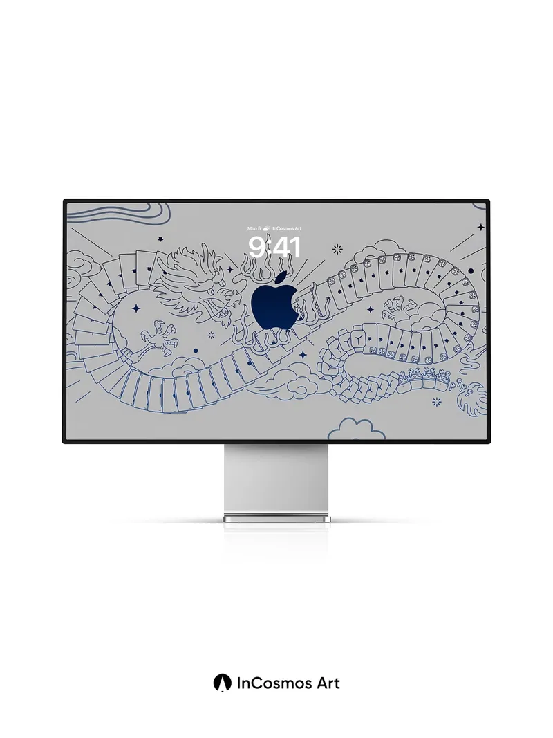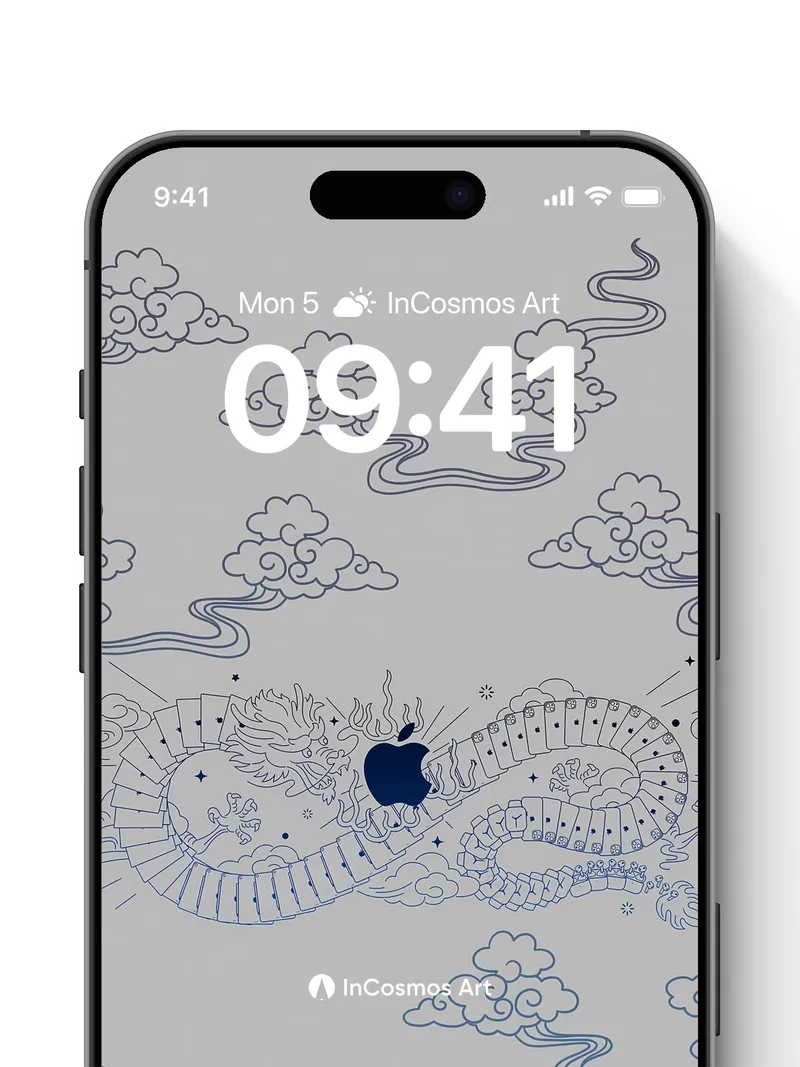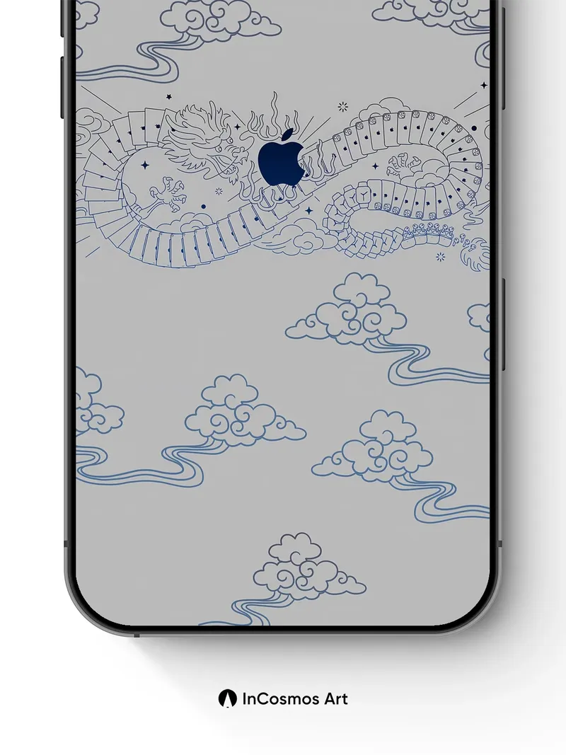 Serene Dragon Wallpaper with Hidden Apple