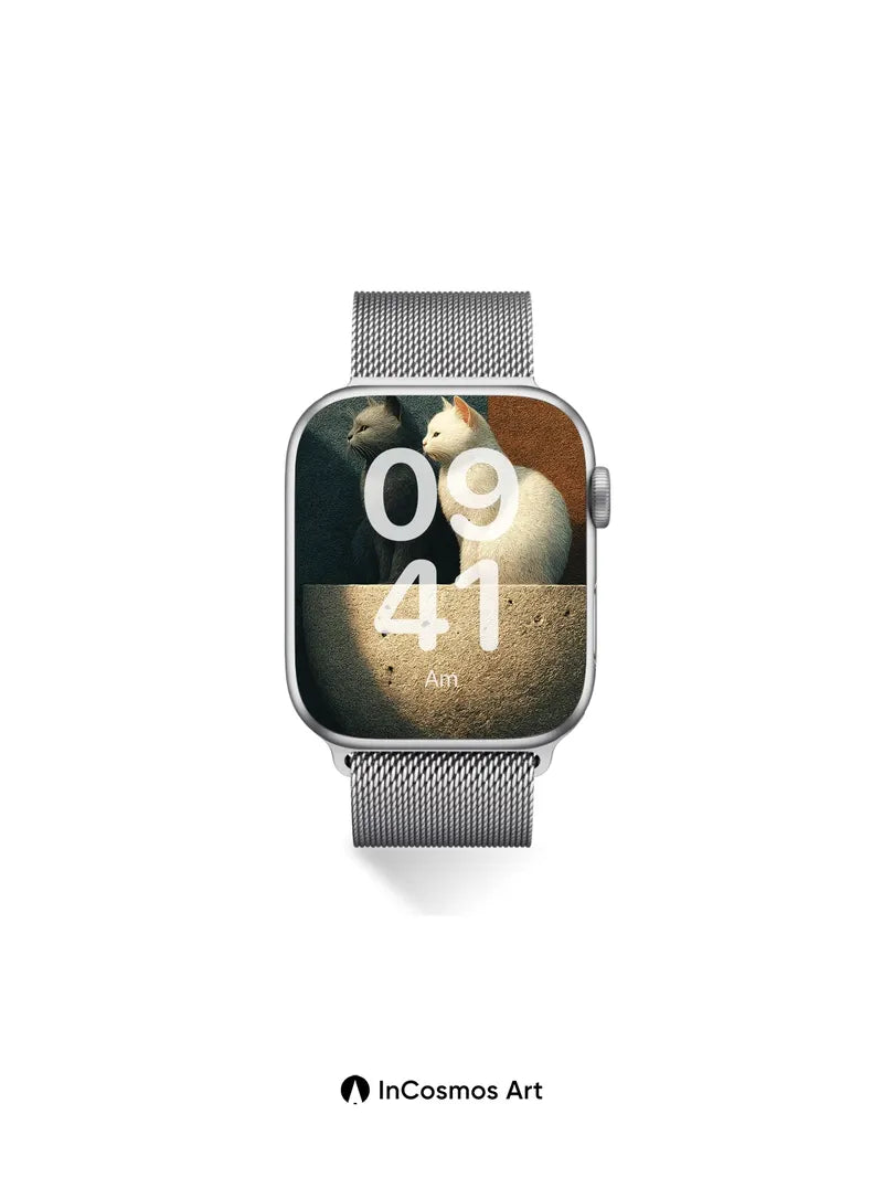 Debug product.metafields.custom.desc: Did you know ancient Egyptians believed cats were sacred guardians of the soul? Here, two feline silhouettes sit in quiet communion atop a half-sphere of textured stone, their fur catching light like spun silk and shadow. The contrast between dark and white is not just color, but a whisper of balance—your gaze drawn to the way sunlight carves soft ridges into their coats, as if time itself paused to honor stillness.