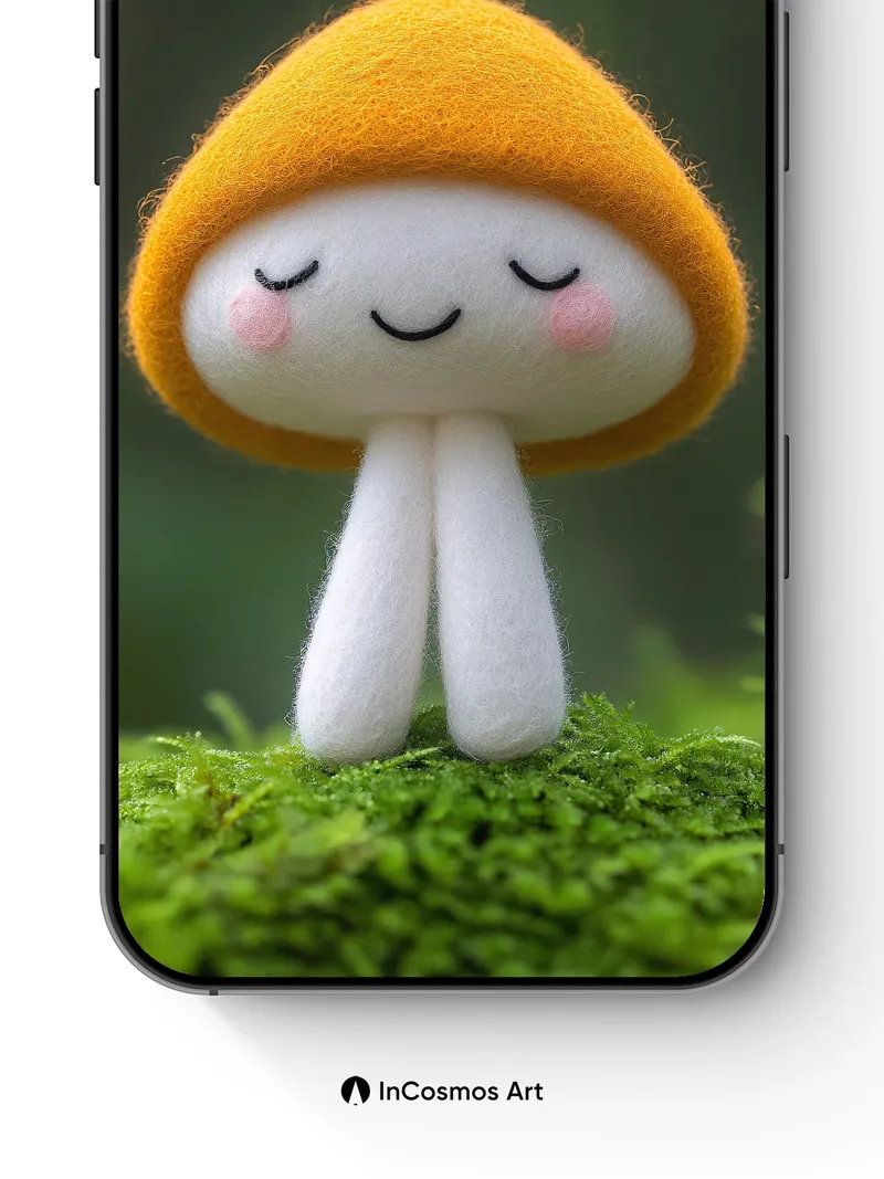 Serene Felt Mushroom Wallpaper with Mossy Embrace