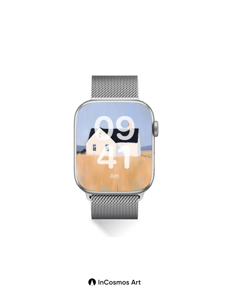 Serene Field House Wallpaper with Golden Grass