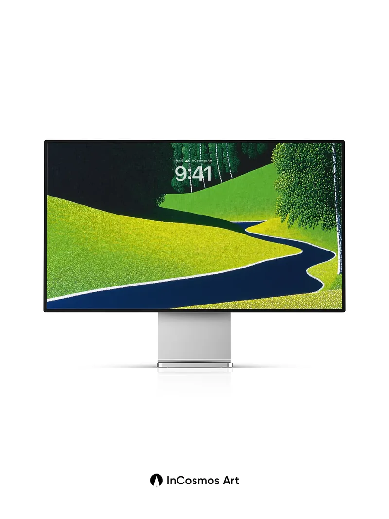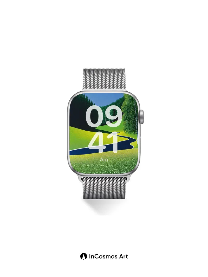 Debug product.metafields.custom.desc: Did you know the first known wallpaper was made from rice paper in 17th-century Japan? Here, a winding river cuts through emerald hills like liquid shadow, while dappled sunlight dances over a field of tiny white flowers—each dot a breath of spring. The birch trees stand sentinel, their silver trunks glowing against deep forest green, as if time itself has paused to listen.