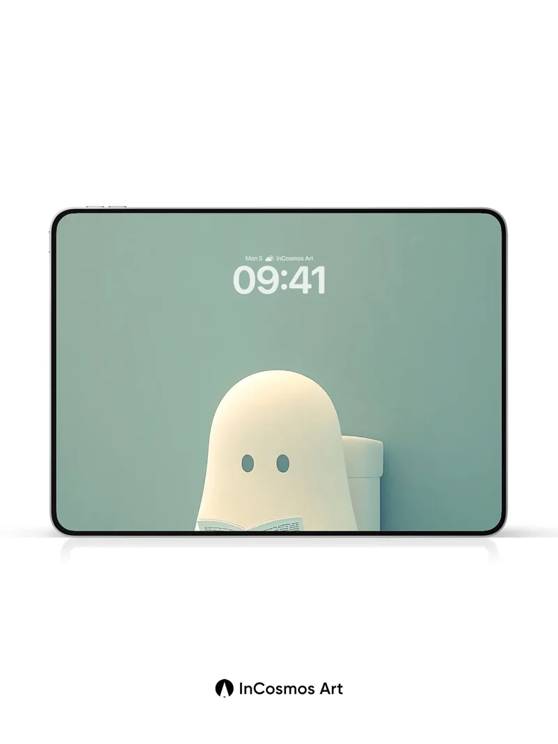 Serene Ghost Reading Wallpaper with Soft Light