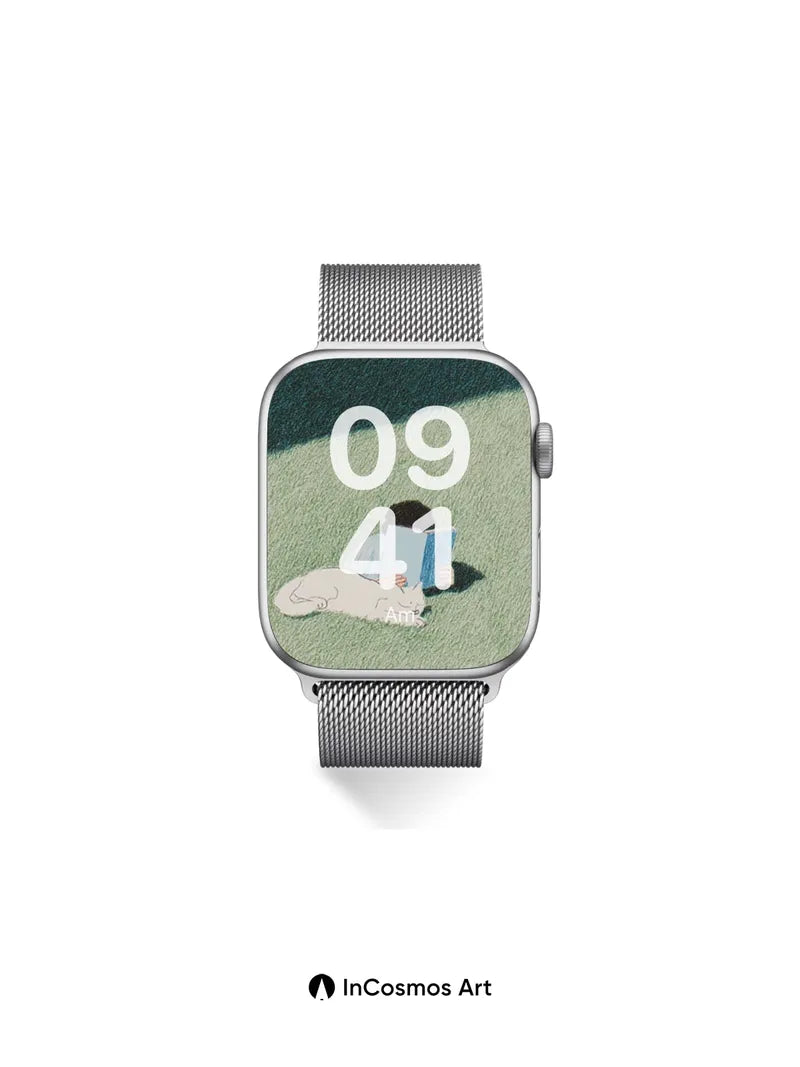Serene Grassland Wallpaper with Sleeping Cat