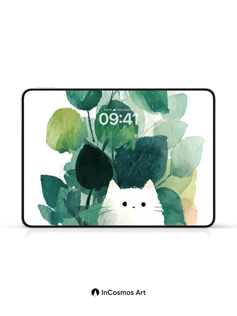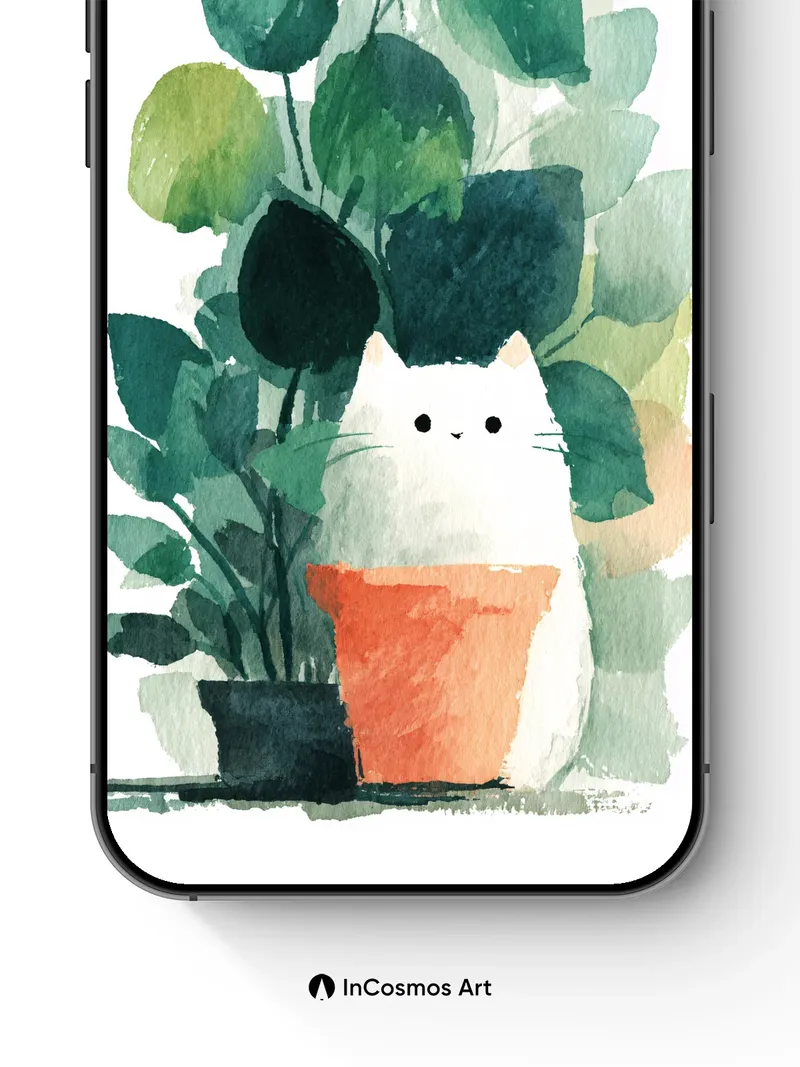Serene Green Hush Wallpaper with Cat in Pot