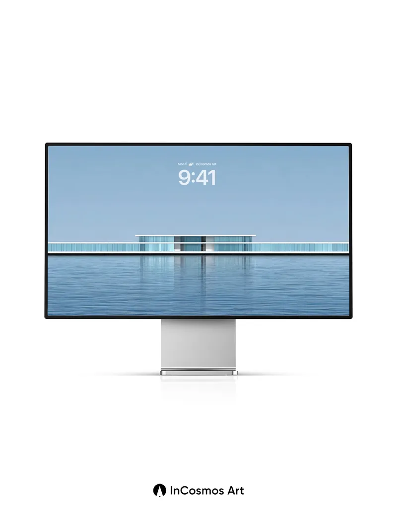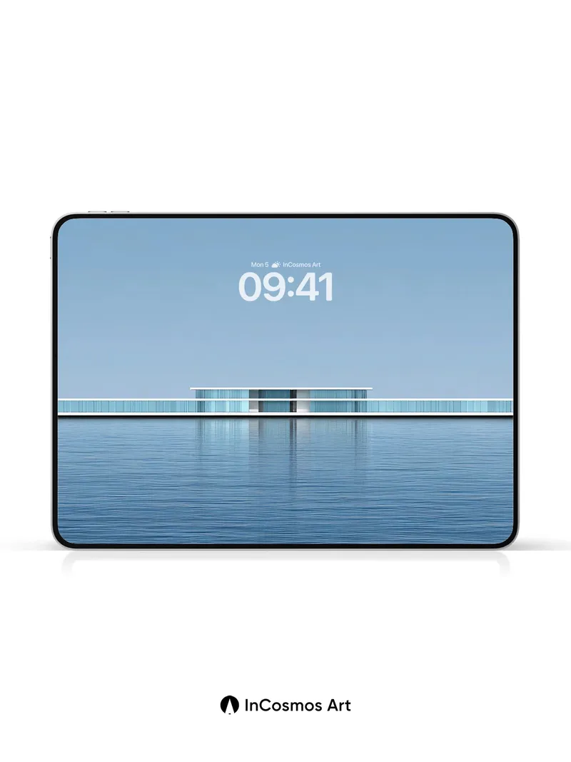 Serene Horizon Wallpaper with Floating Glass Pavilion