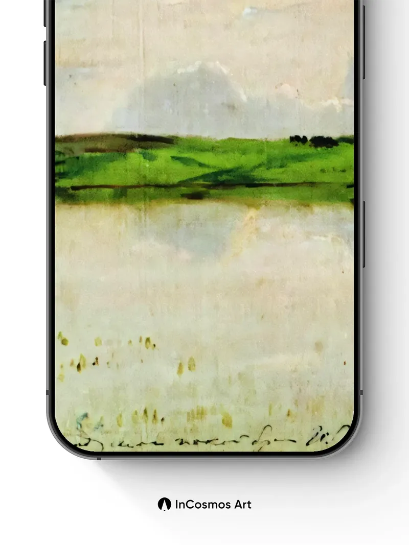 Debug page_description: Did you know that the color green has been scientifically linked to reduced stress and increased focus? This tranquil scene unfolds like a whisper across the surface of still water, where light breathes gently over rolling meadows and a sky painted in soft pastel gradients. The horizon hums with quiet presence, inviting your gaze to wander beyond the frame, into a space where time slows and breath deepens. Share this with your best friend. Send this to your love and swap a matching set. What if every morning began with this kind of peace?
