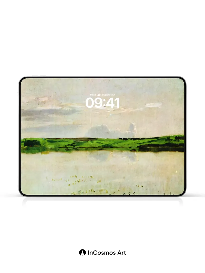 Debug product.metafields.custom.desc: Did you know that the color green has been scientifically linked to reduced stress and increased focus? This tranquil scene unfolds like a whisper across the surface of still water, where light breathes gently over rolling meadows and a sky painted in soft pastel gradients. The horizon hums with quiet presence, inviting your gaze to wander beyond the frame, into a space where time slows and breath deepens.
