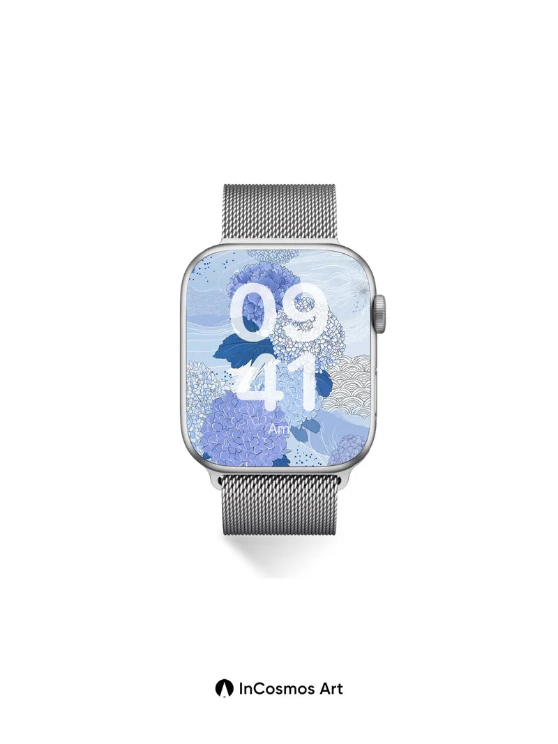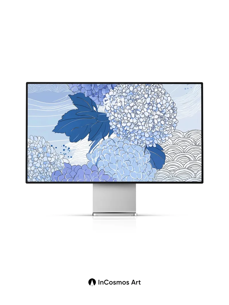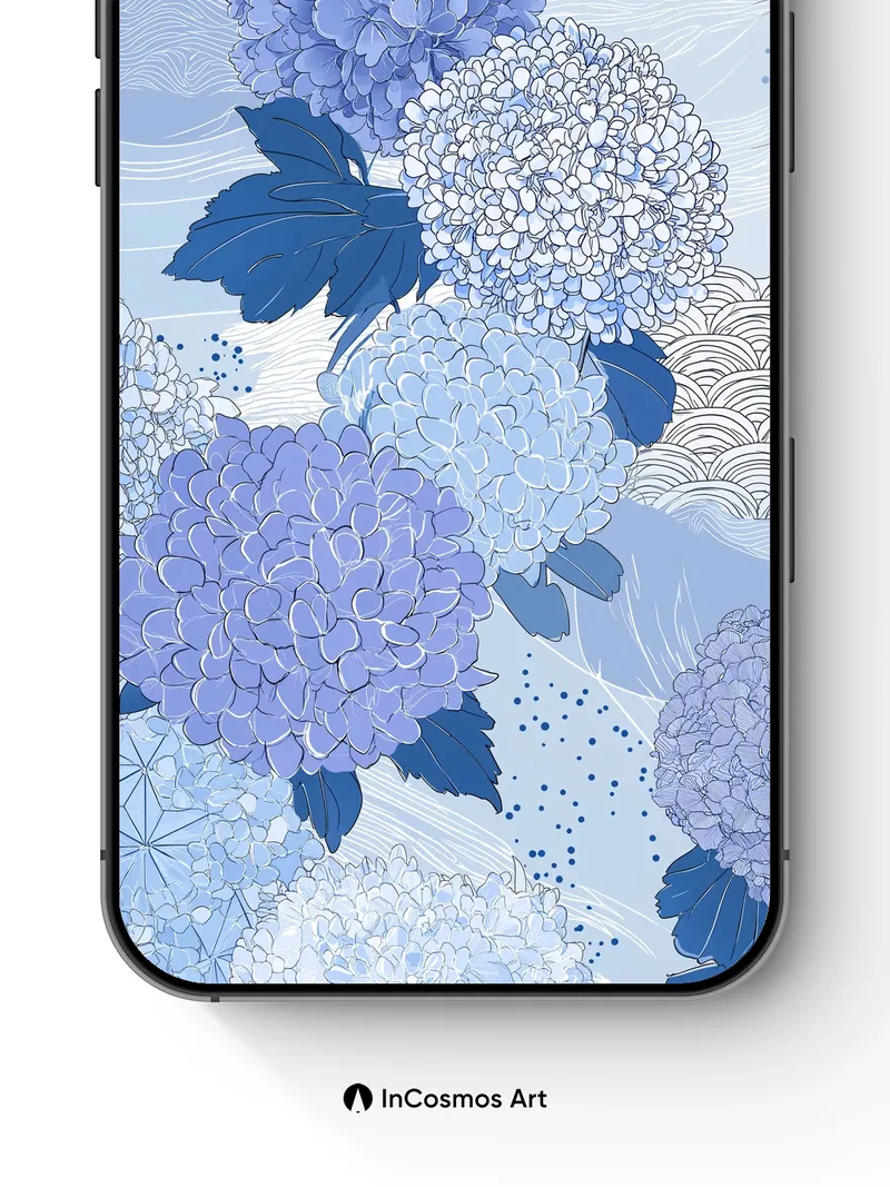 Serene Hydrangea Wallpaper with Wave Motifs