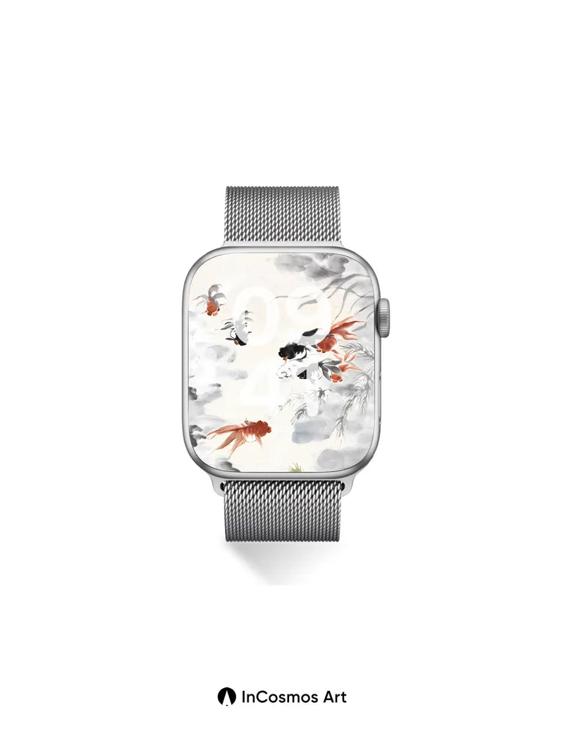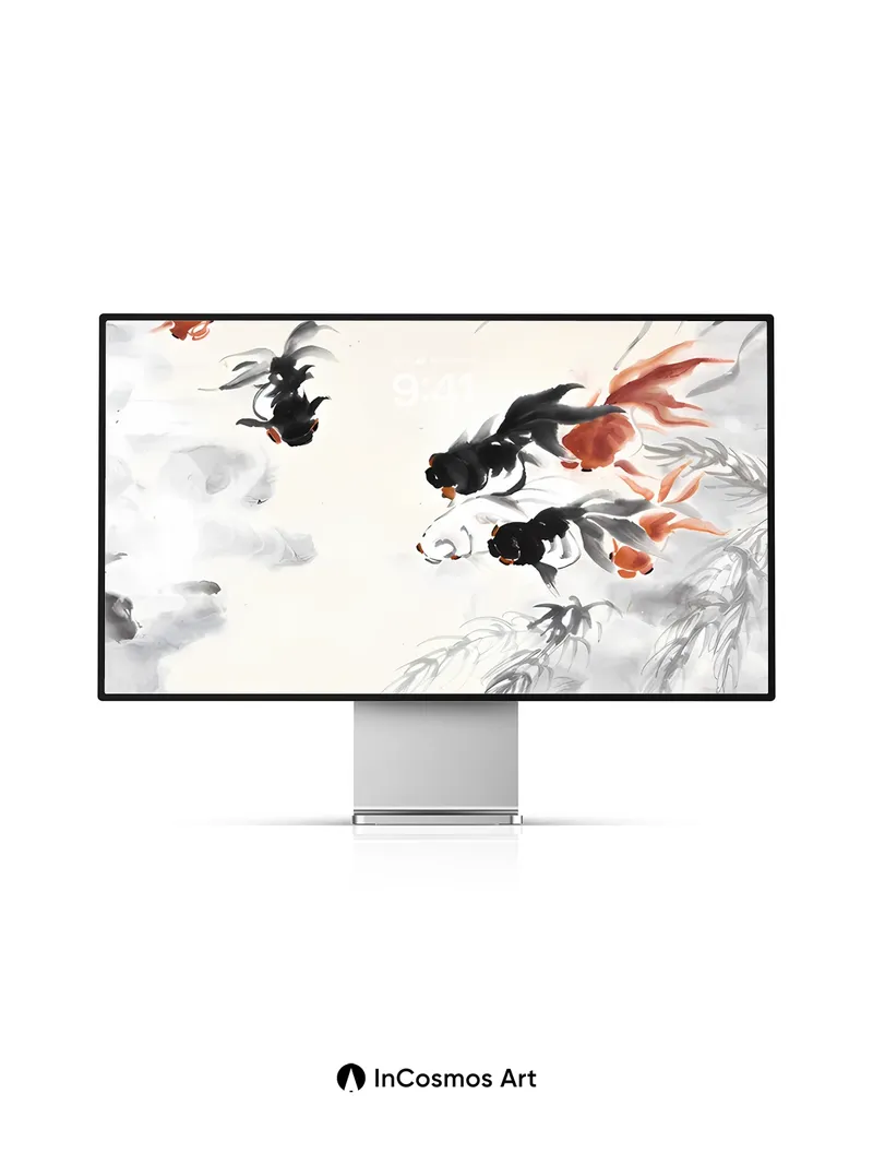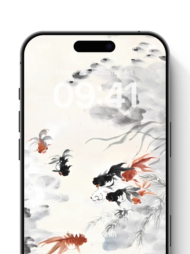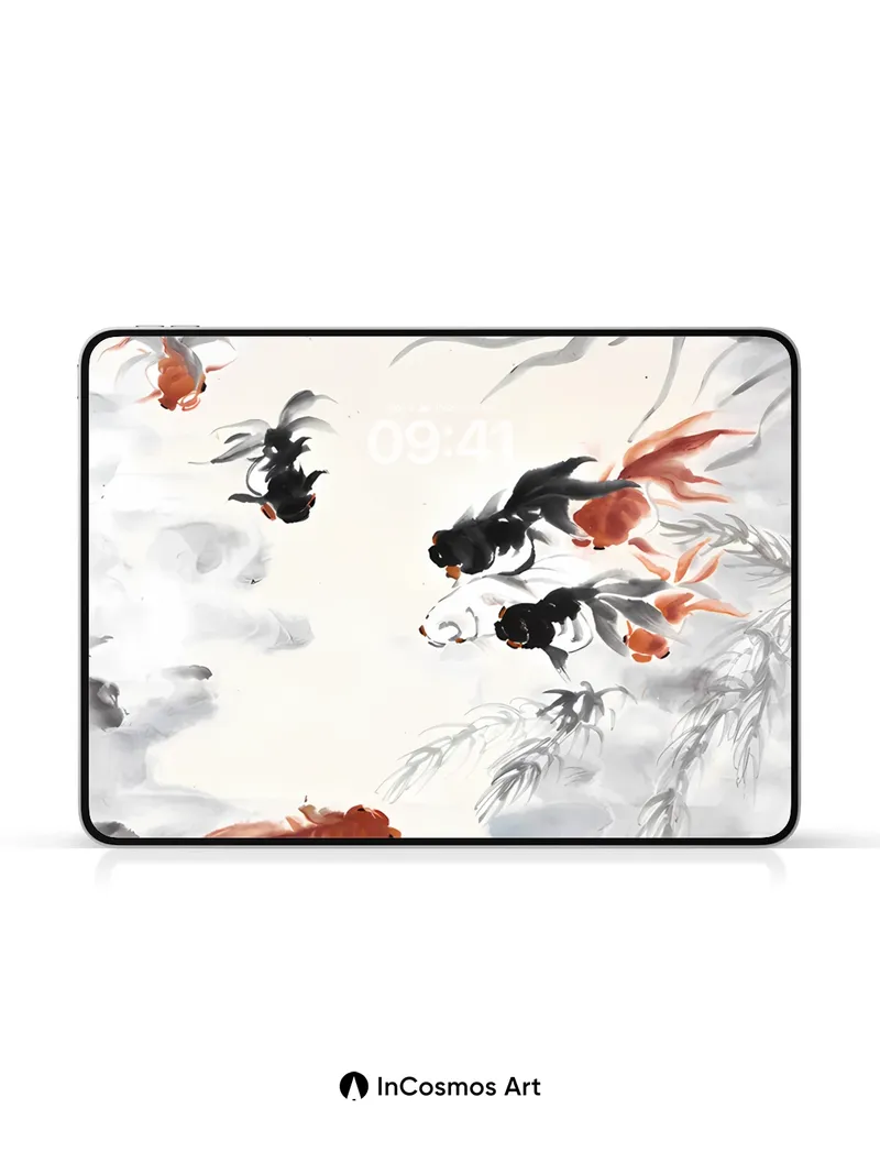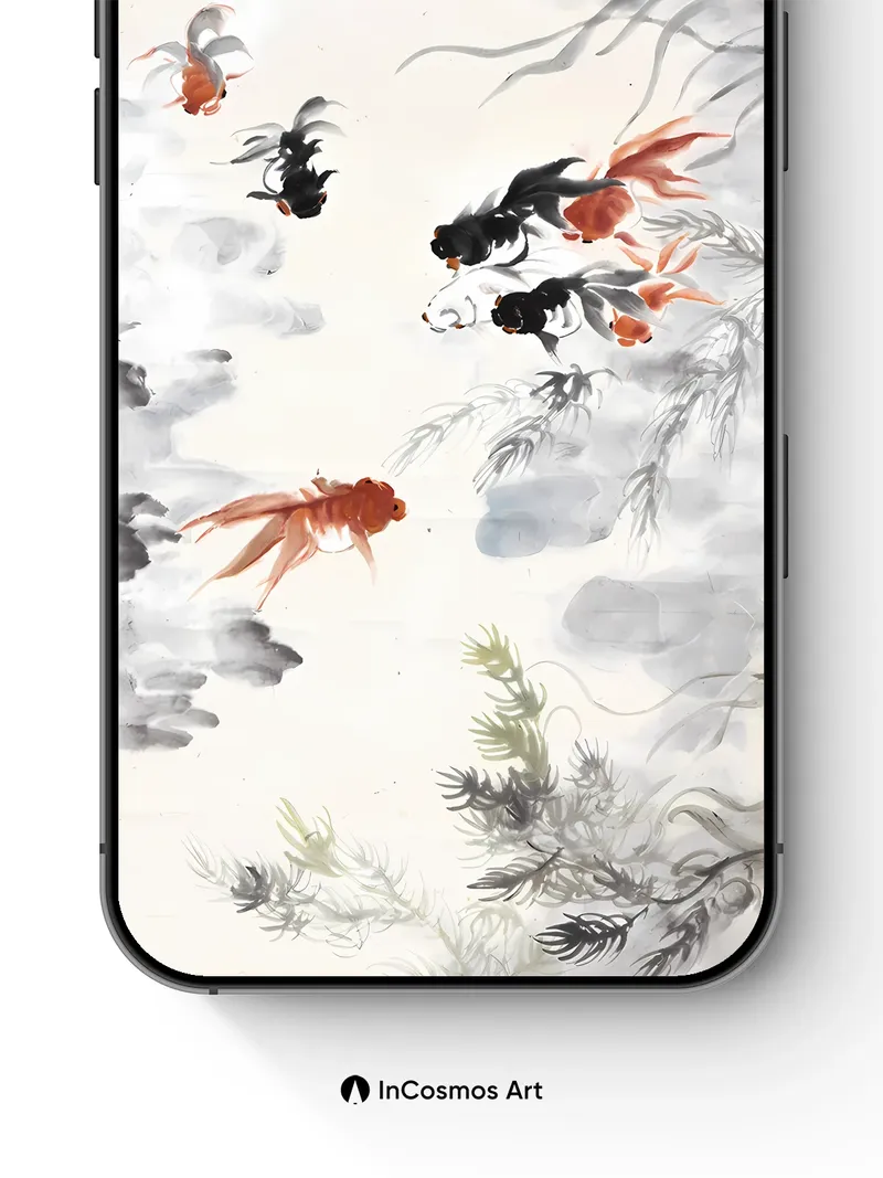 Serene Ink Flow Wallpaper with Goldfish Drift
