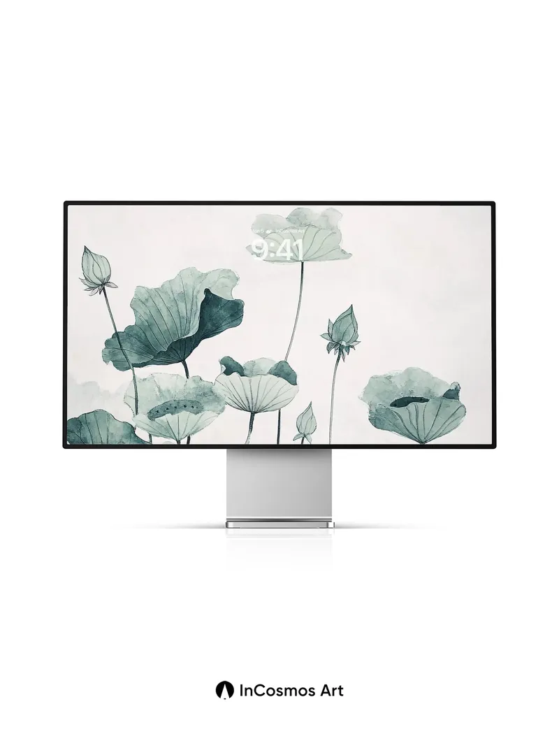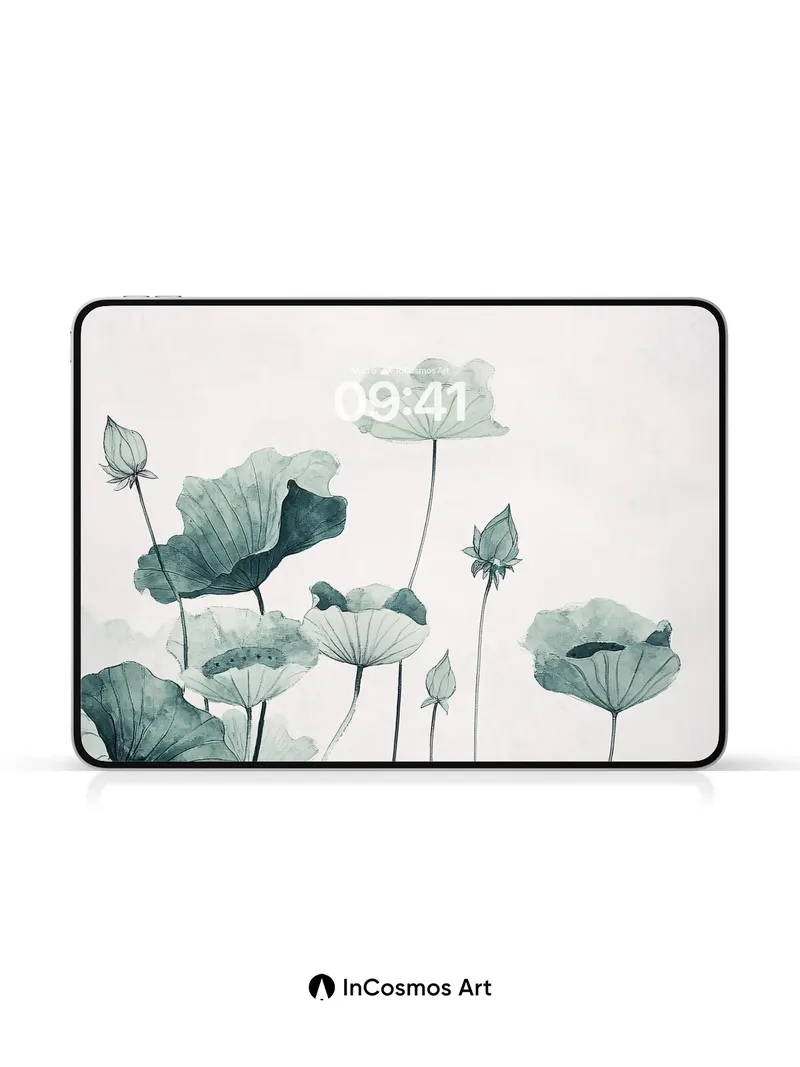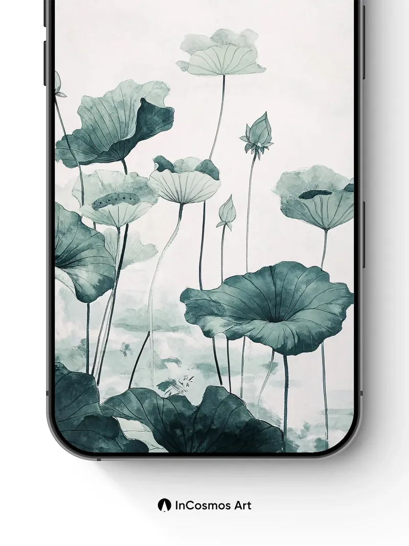 Serene Ink Lotus Wallpaper with Ethereal Depth