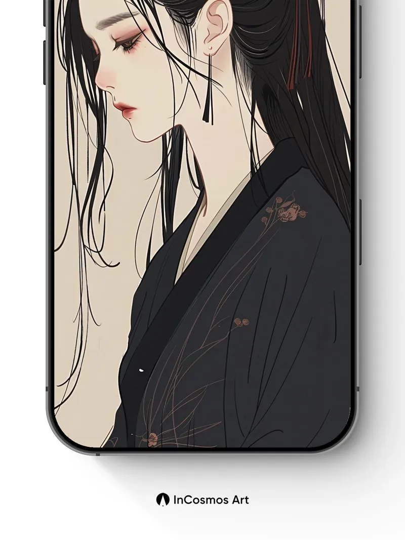 Serene Ink Portrait Wallpaper with Delicate Hairpins